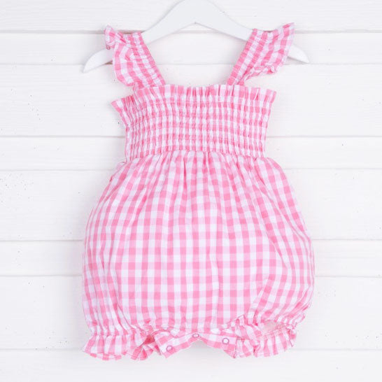 Shop our new matching mom & me collection! The cutest pink check bubble perfect for all day fun or a special occasion! Featuring angel sleeves and an elastic smocked chest.