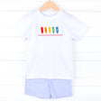 Your little one will have fun during coloring time at school with our Crayon Smocked Blue Stripe Short Set. The white knit shirt features smocked colorful crayons. Coordinated with blue stripe shorts, this set is perfect for both school and playtime.