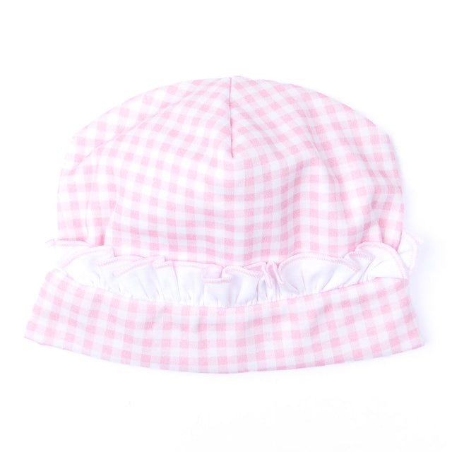 The cutest gingham baby hat made from the softest pima cotton. Coordinates with other items in the Mini Checks Collection from Magnolia Baby.