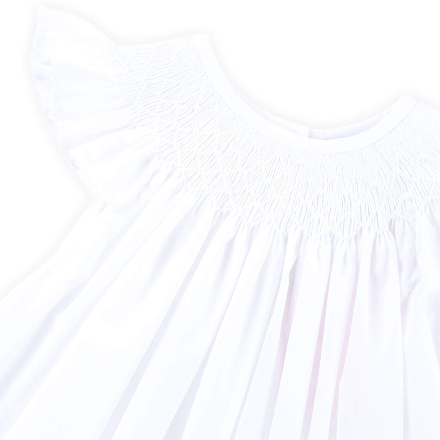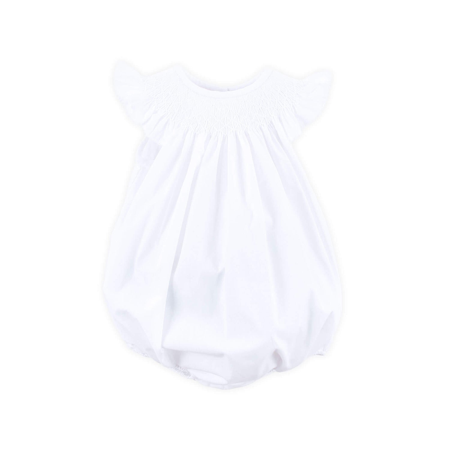 Step into spring in our Shine Like A Pearl White Smocked Bubble. A versatile outfit for any occasion, this bubble features geometric smocking adorned with pearls and adorable flutter sleeves with white picot trim. For easy and quick changes, the bubble is designed with convenient snaps in stride.