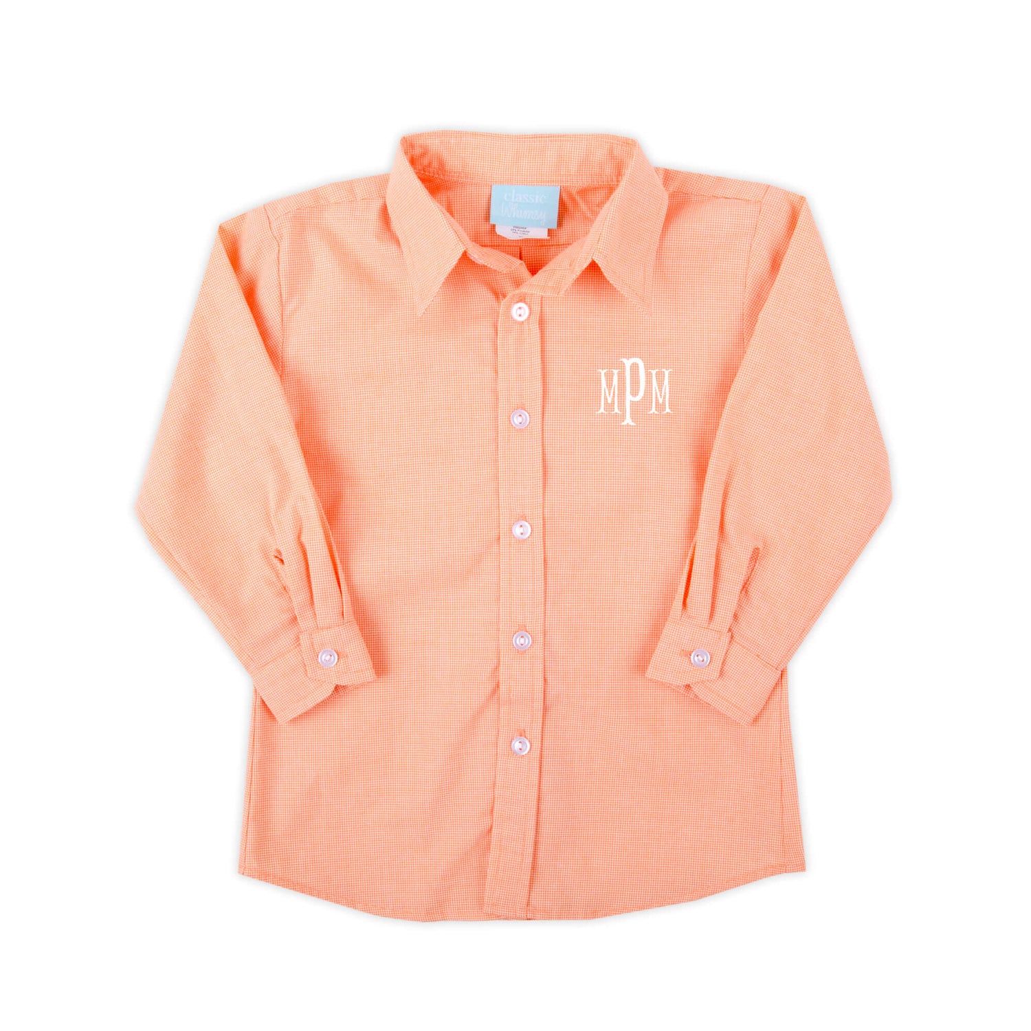 This Orange Seersucker Button Down Shirt is a must-have Spring-Summer look for boys. This orange stripe shirt is a classic addition to your little boy's wardrobe. Personalize the look with a monogram for added charm.