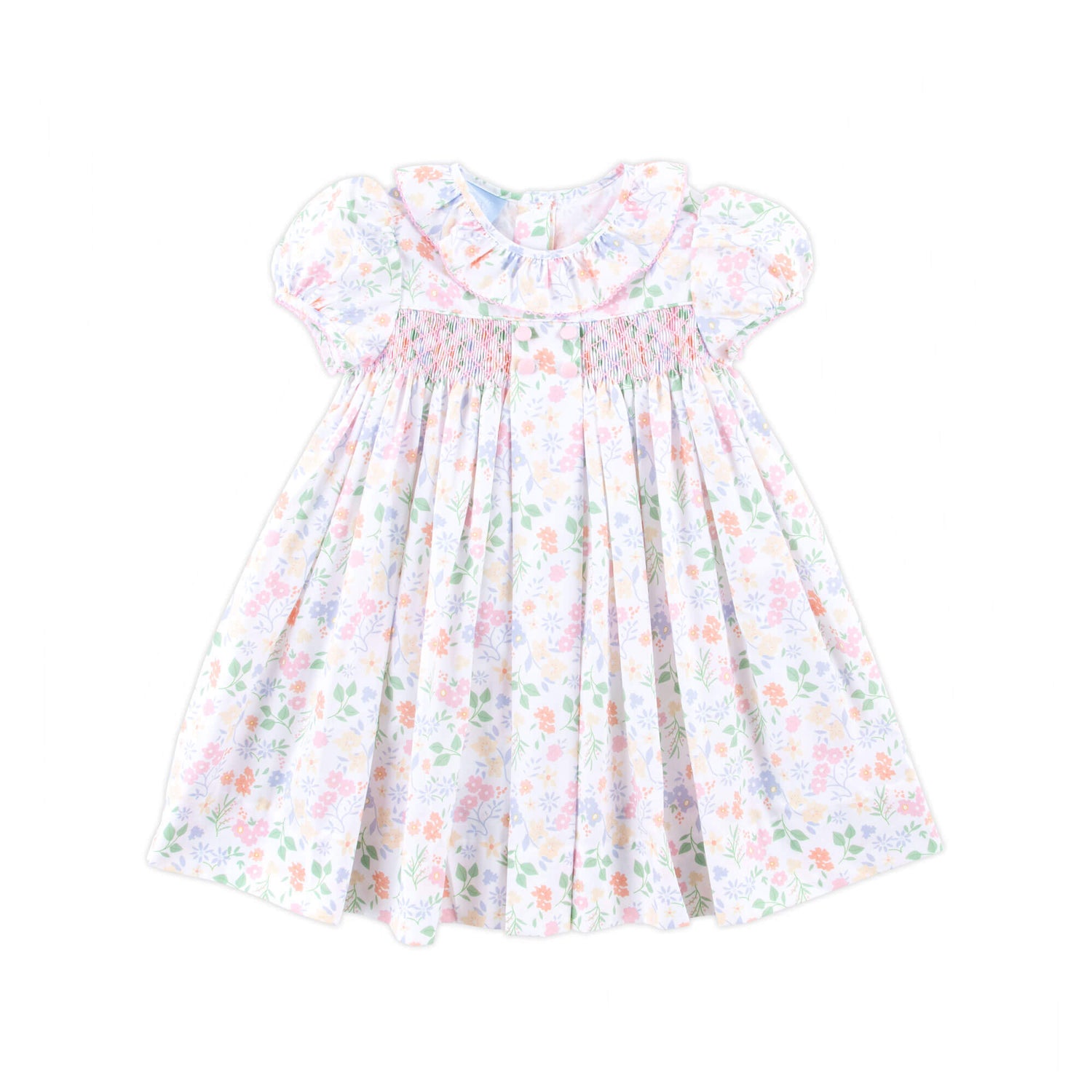 Celebrate the magic of fall in our oh-so-sweet Autumn Floral Beth Dress! This darling Beth style features a delightful floral print, pretty geometric smocking, and the cutest ruffle collar for an extra dash of charm. Perfect for twirling through pumpkin patches and crisp autumn days!