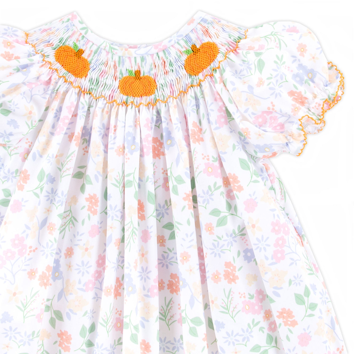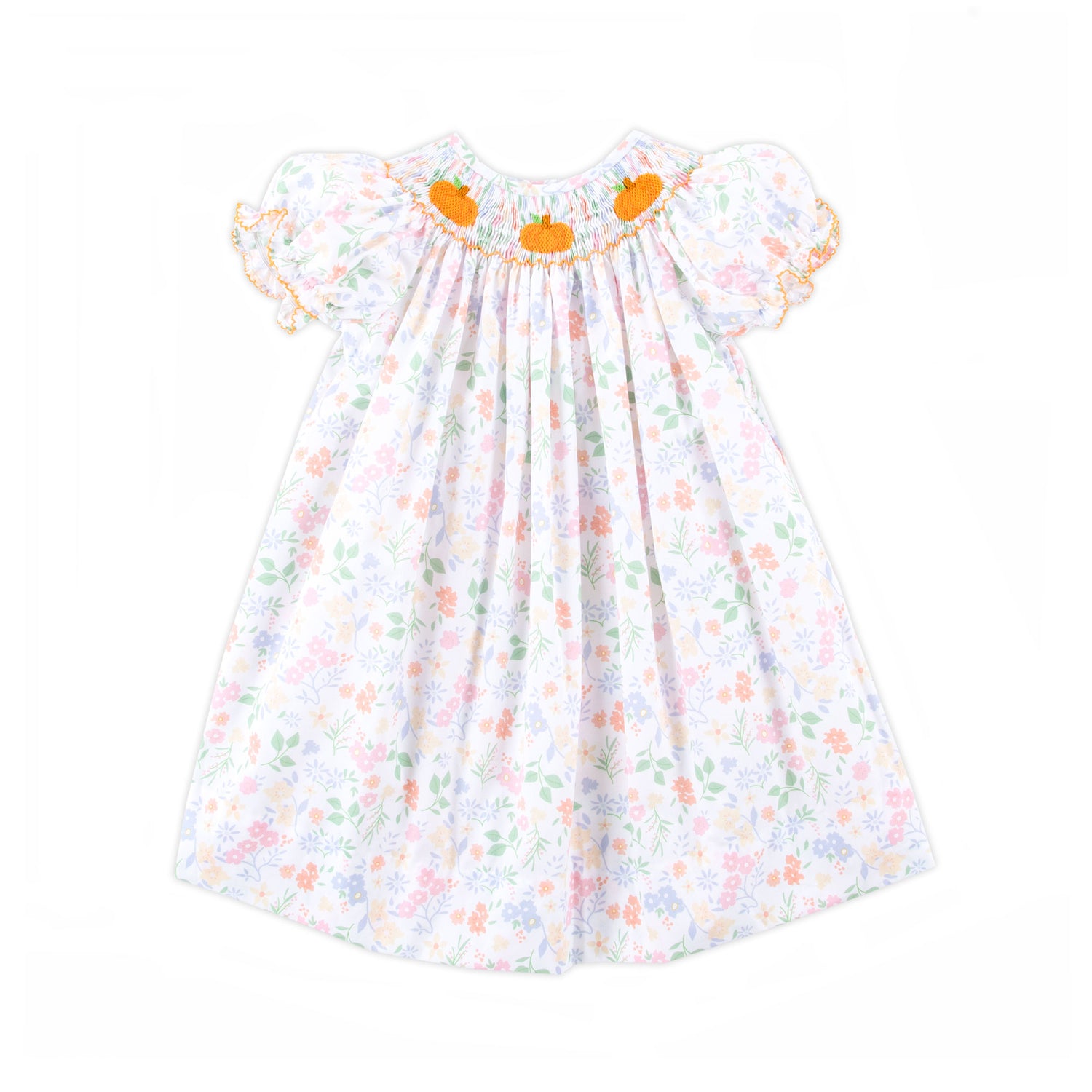 Celebrate the magic of fall in our oh-so-sweet Autumn Floral Pumpkin Smocked Bishop Dress! This darling dress features a delightful floral print, sweet pumpkin smocking, and the cutest bishop sleeves for an extra dash of charm. Perfect for twirling through pumpkin patches and enjoying crisp autumn days!