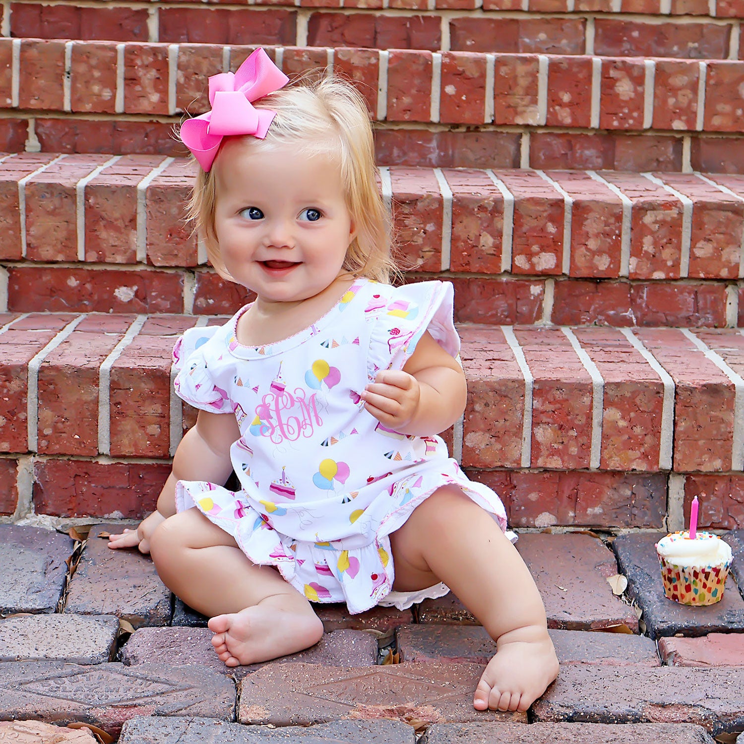 Celebrate a big birthday in our adorable Birthday Cake Milly Dress! This charming knit dress features a festive birthday-themed print, playful double fluttered sleeves with pink picot trim, making it the perfect choice for a fun and stylish party outfit. Add a personalized monogram to make it uniquely yours!