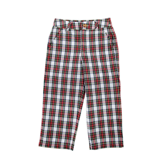 The holidays are here, and your little one will look absolutely adorable in our Ferris Plaid Standard Pants! These plaid pants are perfect for Christmas gatherings and holiday photos. The classic straight silhouette features slant pockets, back welt pockets, a zip fly with button closure, and belt loops. Pair them with your favorite shirt for a complete look.