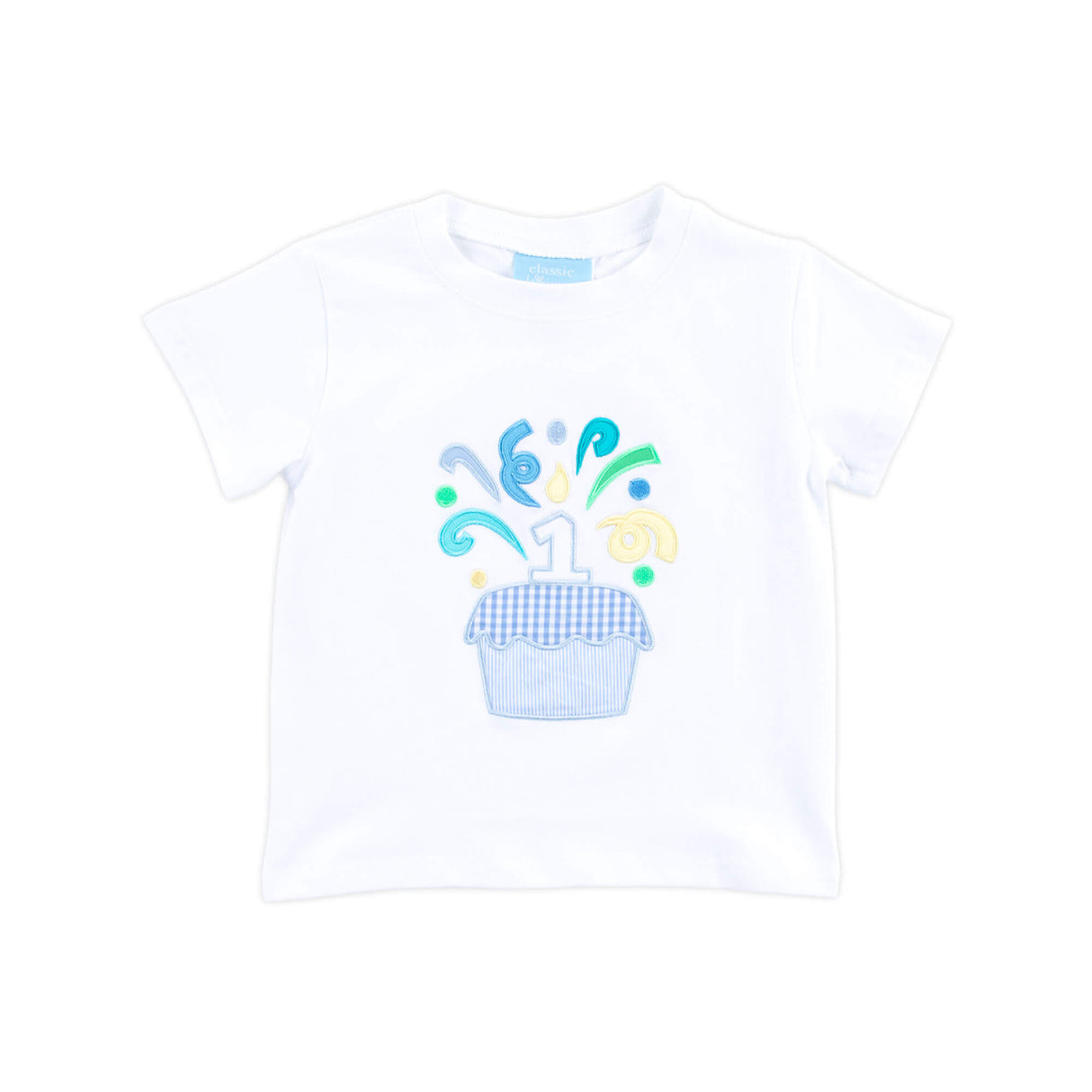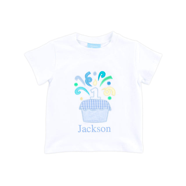 This First Birthday Cupcake Short Sleeve Shirt is perfect for birthday fun, comfort, and cuteness! Featuring an adorable and fun 1st birthday cupcake applique, it’s a sweet and stylish choice. Don’t forget to add a name monogram for a special touch!