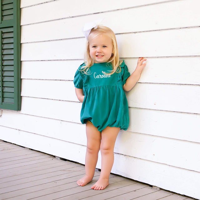 How sweet is this Corduroy Olivia Bubble? Perfect for playtime fun, this adorable bubble features bishop sleeves and delicate ruffle details. With snaps in stride for easy changes, it’s as practical as it is cute. Add a monogram to make this outfit uniquely hers!