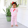 Let your little one enjoy the winter weather in our adorable Happy Santa Pink Jogger Set! Perfect for cooler days and celebrating Christmas, this pink set features a Santa appliqué on a cozy French terry sweatshirt, paired with matching joggers that have an easy pull-on waistband. Add a monogram for a special holiday touch.