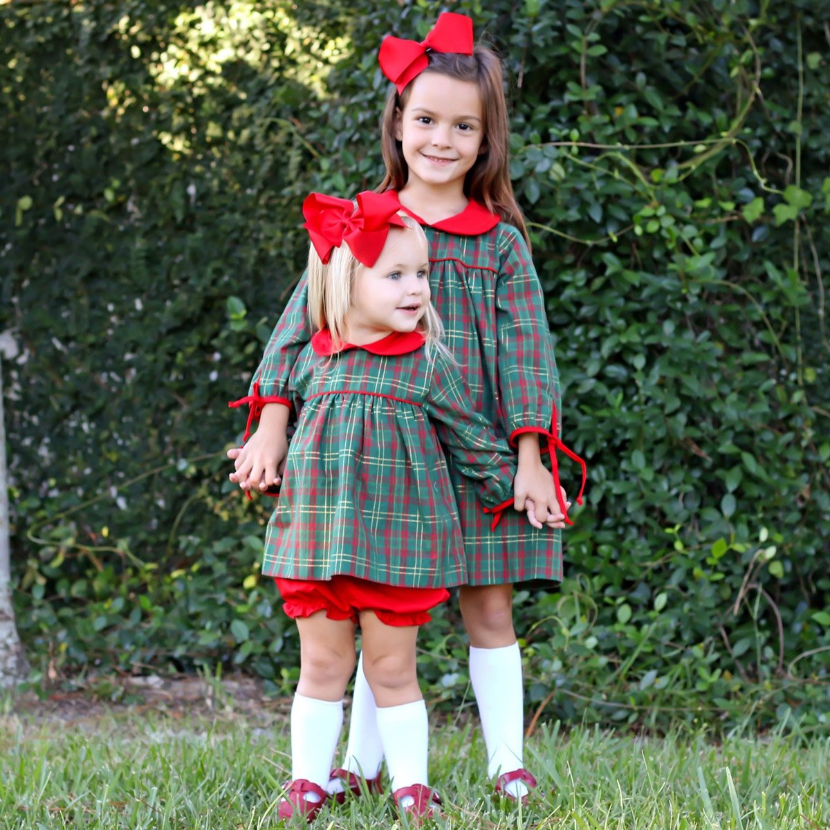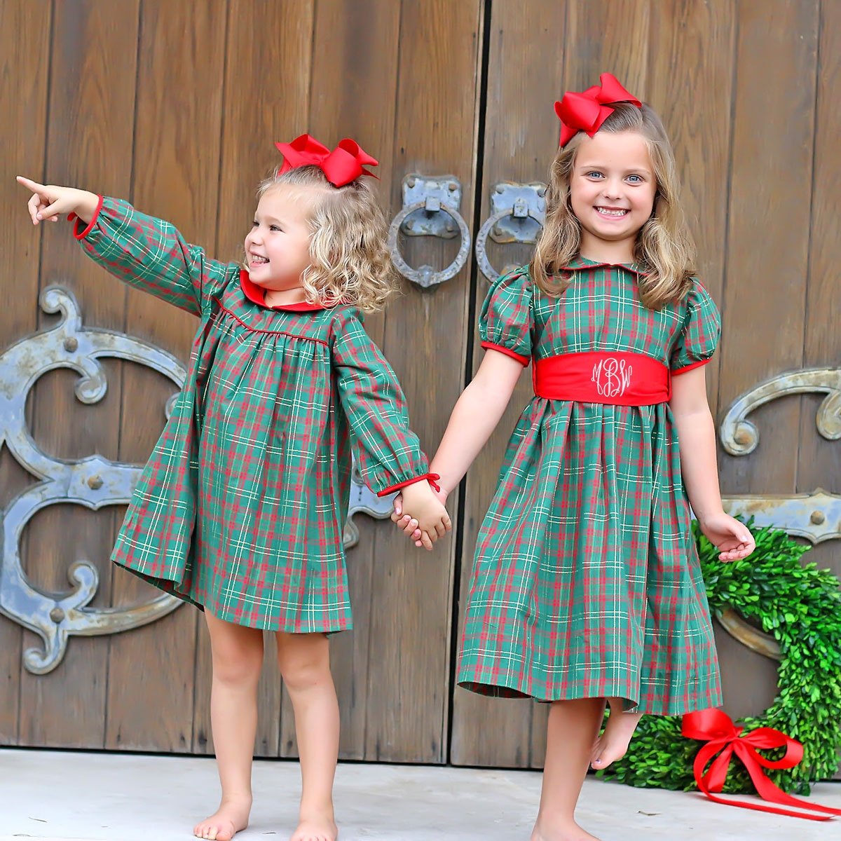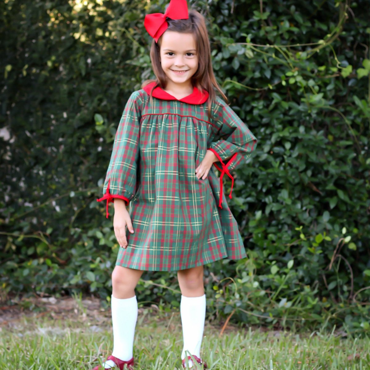 This Christmas Green Plaid Lillian Dress is the perfect holiday dress! This Lillian-style dress in vibrant green and red plaid adds a touch of holiday charm. It's ideal for a Christmas card, a holiday party, or visiting Santa.