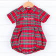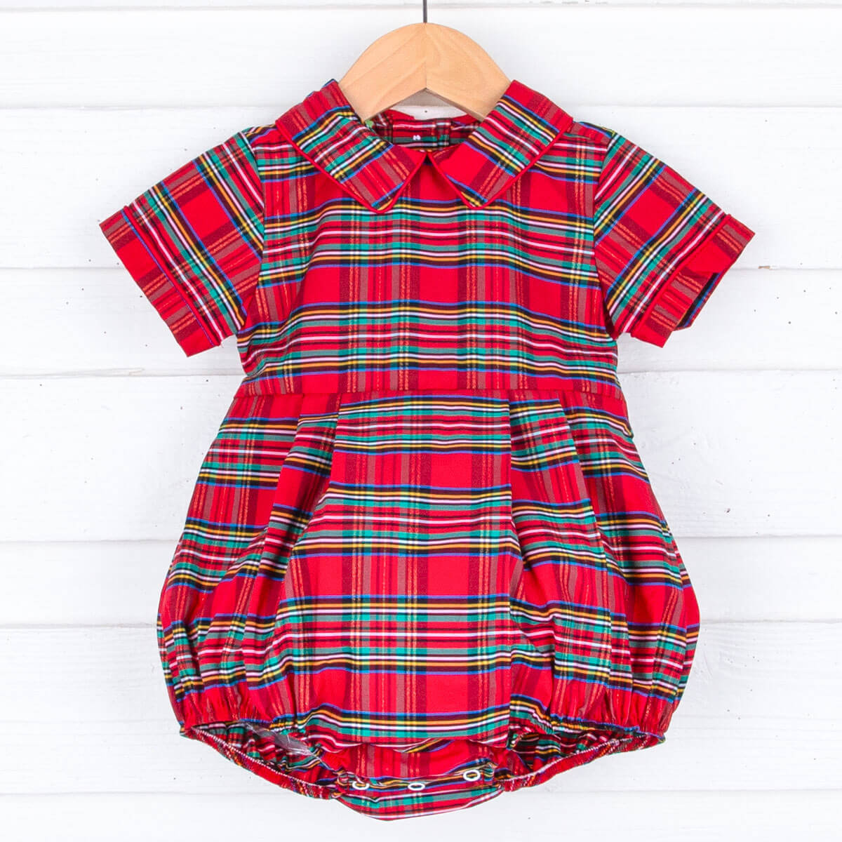 This lovely Manchester Plaid Collared Bubble is perfect for creating cherished memories and capturing picture-perfect moments. The red plaid bubble for baby & toddler boys features a collar, short sleeves, and snaps in stride.