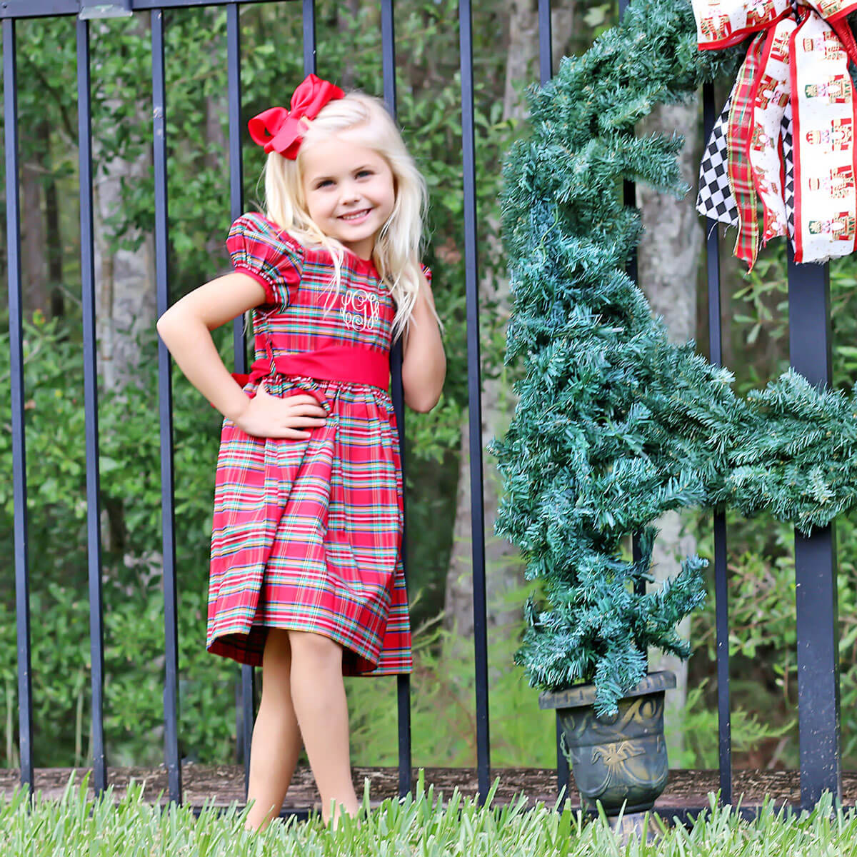 This lovely Manchester Plaid Sash Dress is perfect for creating cherished memories and capturing picture-perfect moments in festive red plaid. Add a monogram to finish your Christmas look!