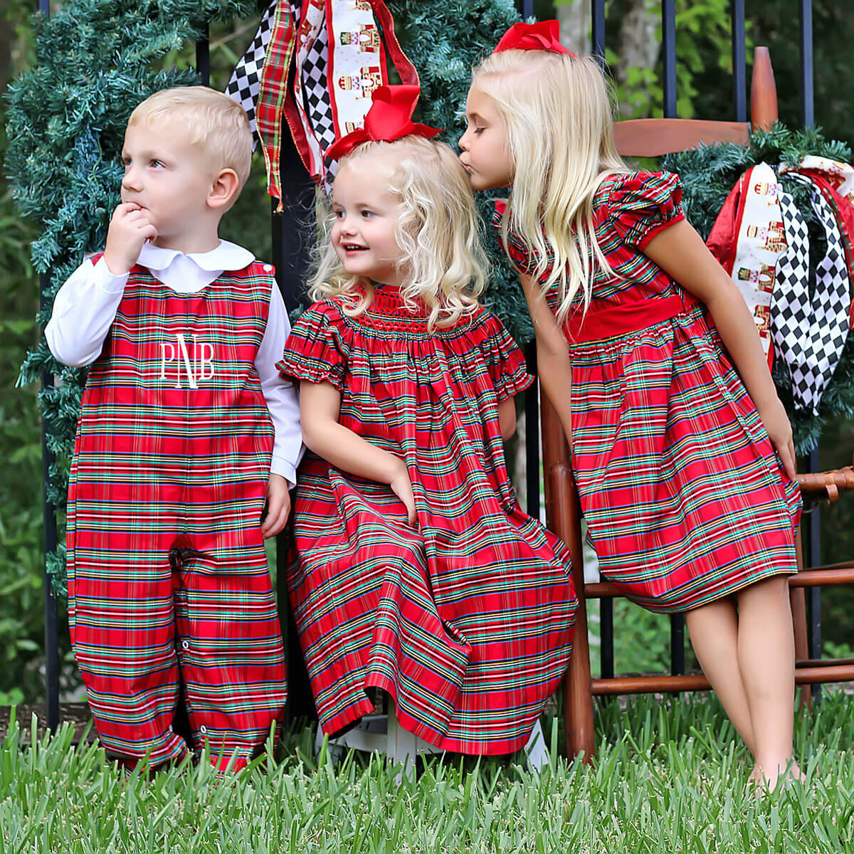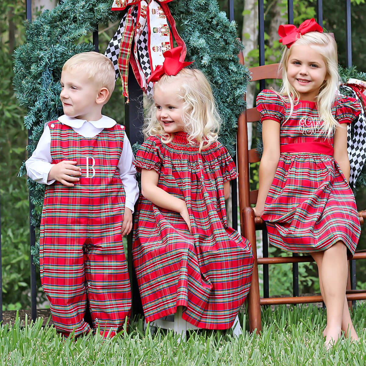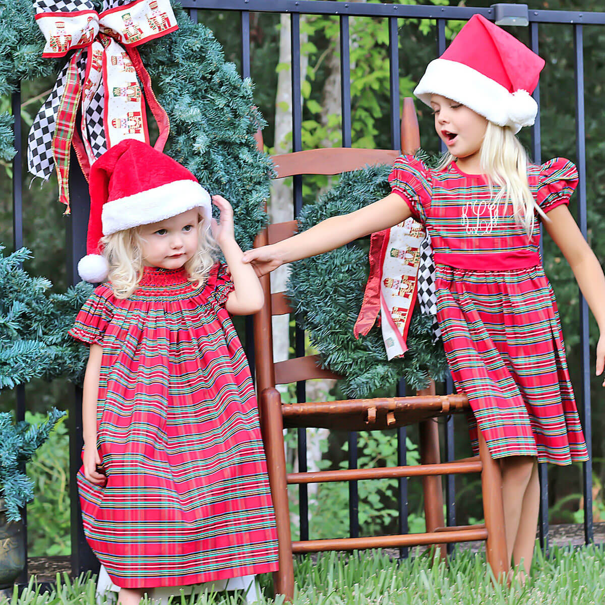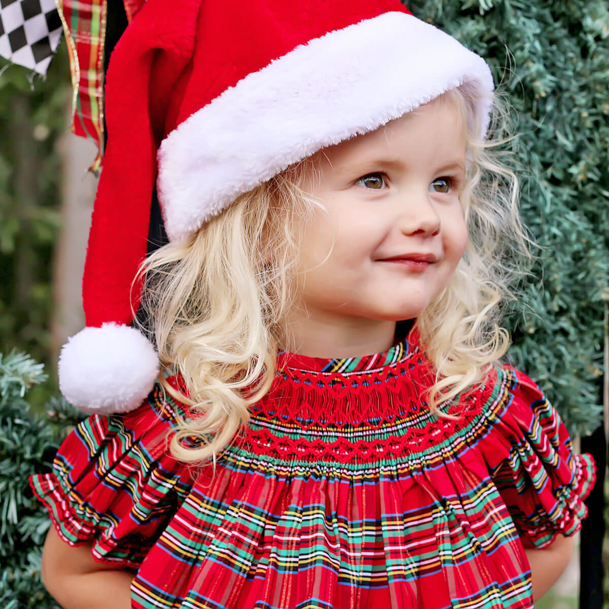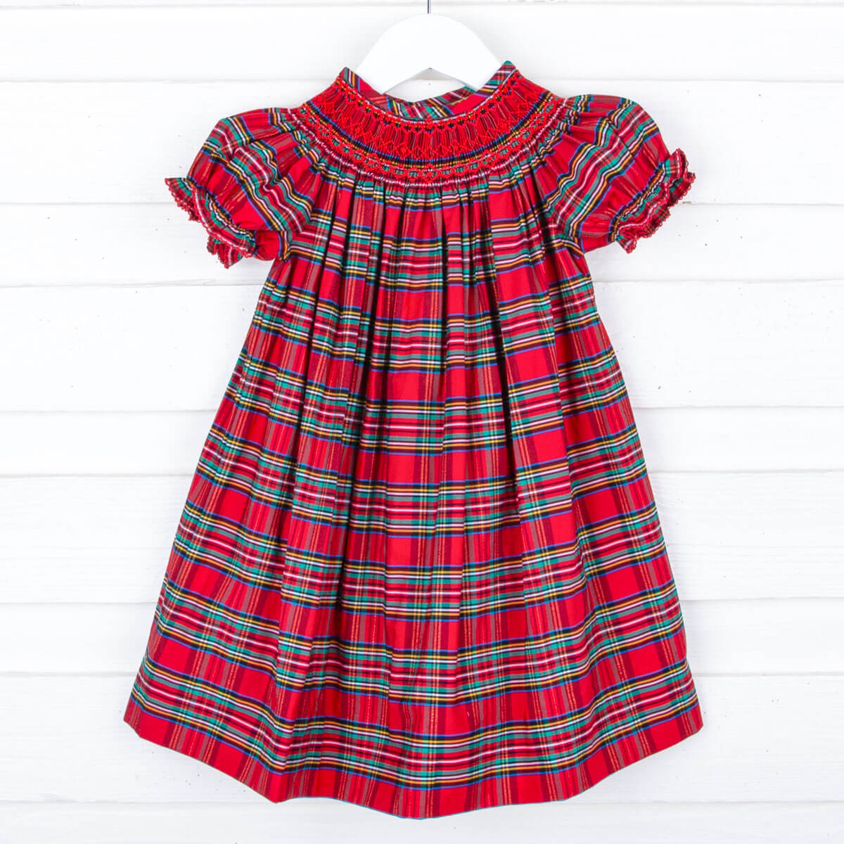 This lovely Manchester Plaid Smocked Bishop Dress is perfect for creating cherished memories and capturing picture-perfect moments. The red plaid dress features geometric smocking and bishop sleeves.