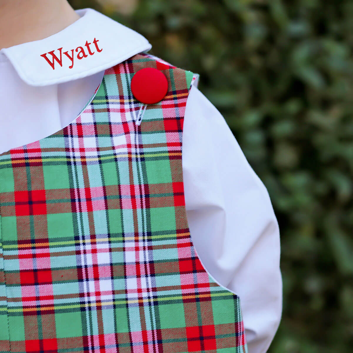 Celebrate the holidays in style with the Merry Plaid Longall! This festive plaid longall is perfect for making holiday memories even more special. With shoulder buttons and snaps in the stride for easy changes, it’s both charming and practical. Add a monogram for a personalized holiday touch.