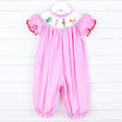 Get into the holiday spirit with our enchanting Mr. Grouch Smocked Long Bubble. This pink gingham bubble is a must-have addition to your little one’s holiday wardrobe! It features hand-smocked Mr. Grouch characters and bishop sleeves with red ric-rac trim, adding a touch of festive magic. Snaps in the stride ensure easy changes, so your little one can continue enjoying all the holiday fun.