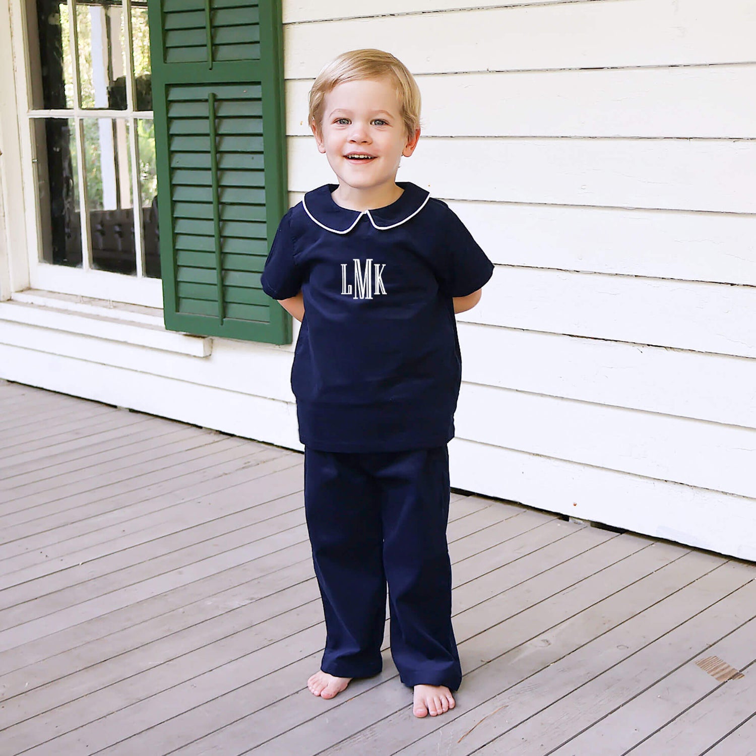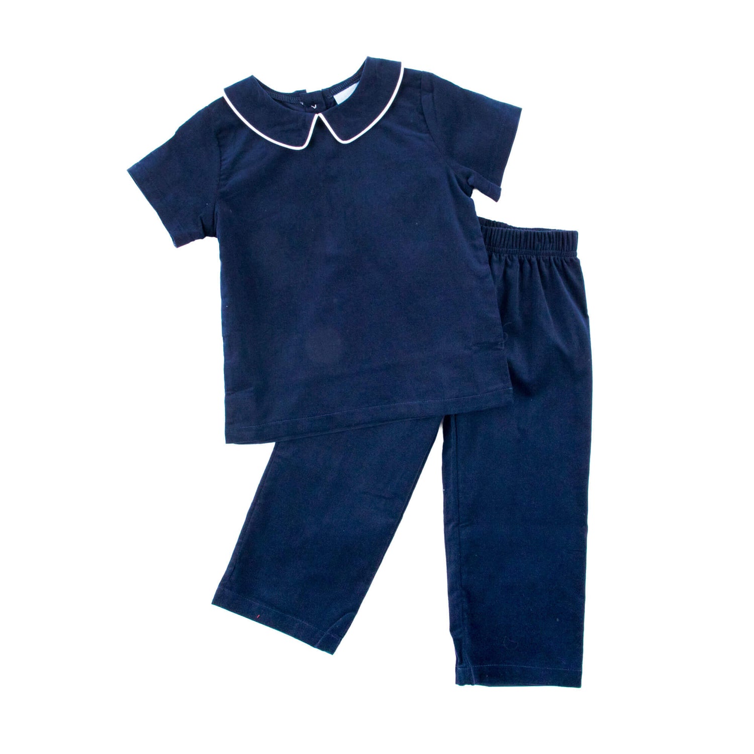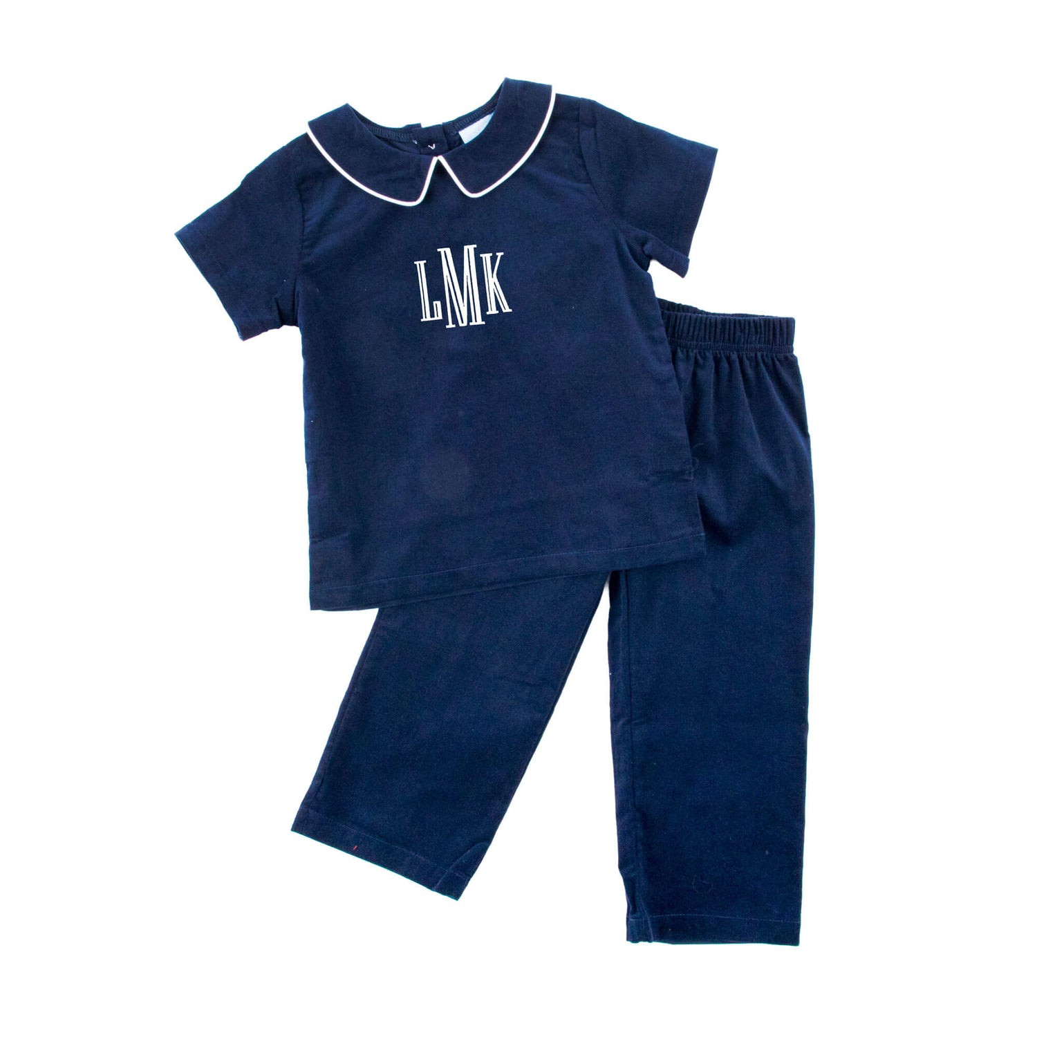 This Corduroy Collared Pant Set is a classic boy outfit for the Holidays. Featuring a collar and short sleeves. The set includes matching red waistband pants. Wear it for Christmas and again for Valentine's Day or the 4th of July! Add a monogram to finish the look.