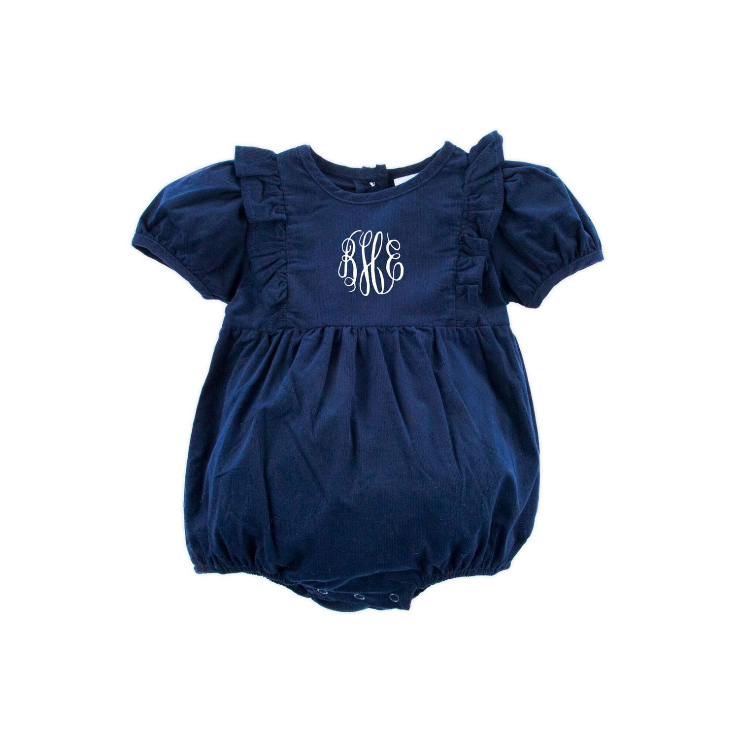 How sweet is this Corduroy Olivia Bubble? Perfect for playtime fun, this adorable bubble features bishop sleeves and delicate ruffle details. With snaps in stride for easy changes, it’s as practical as it is cute. Add a monogram to make this outfit uniquely hers!