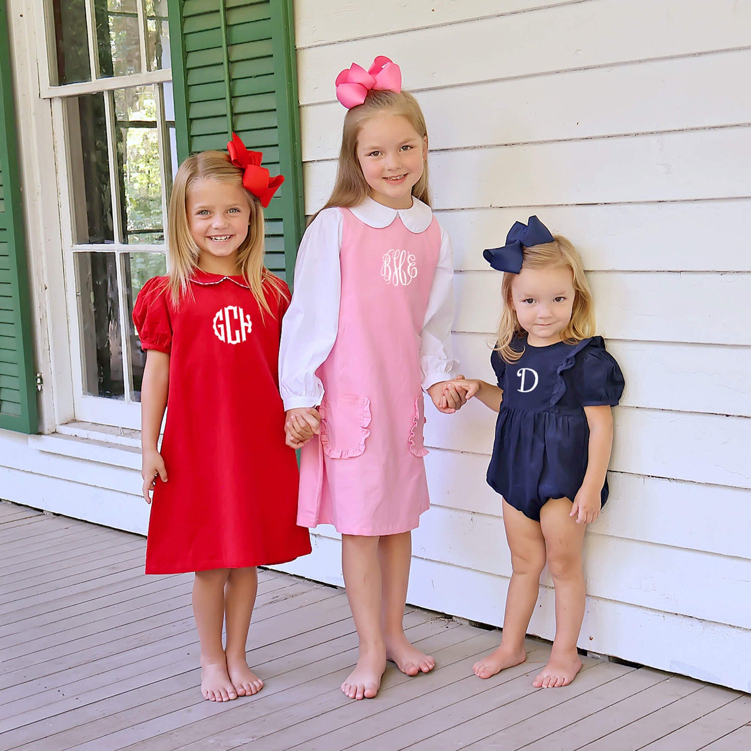 Our classic girls' Corduroy Graycen Jumper Dress comes in perfect vibrant colors! It’s an ideal outfit for fall and winter. This sleeveless dress features two cute ruffle front pockets and is available in a variety of corduroy colors. Don’t forget to add your monogram for that personal touch!