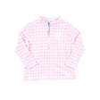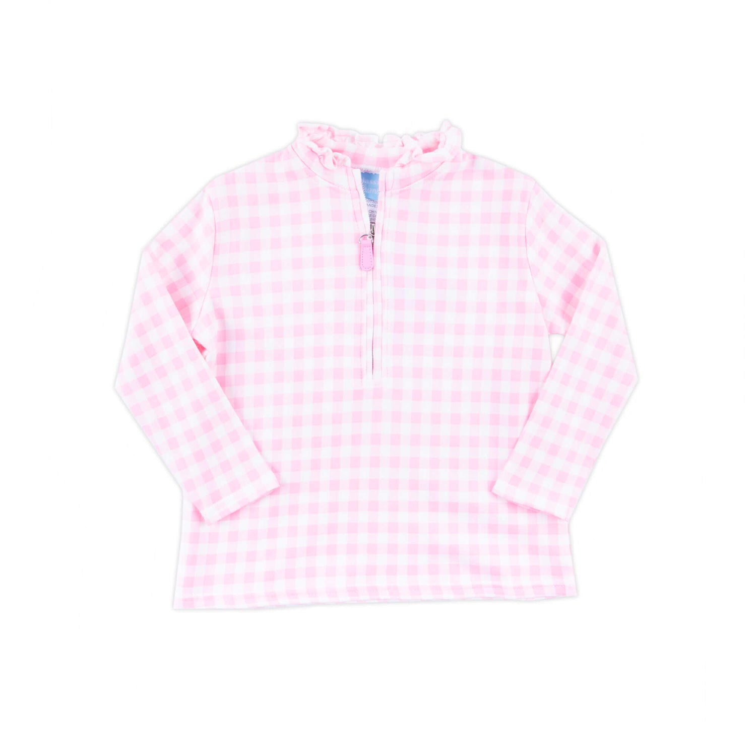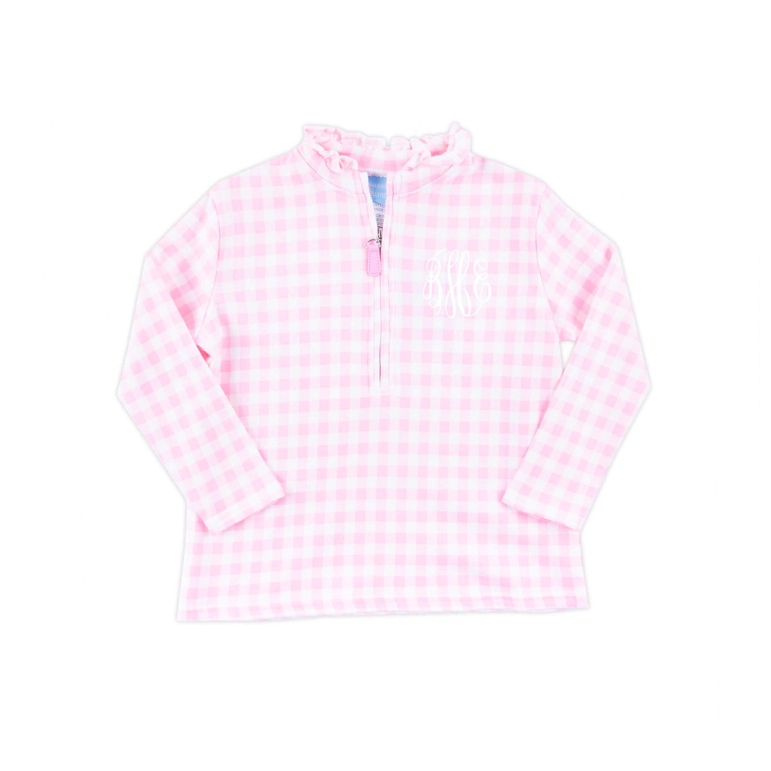 Make sure your little girl is ready for cooler weather with our new Pink Gingham Half Zip Pullover. This lightweight outerwear piece features a sweet ruffle collar and half front zipper with long sleeves. Super versatile for Fall, Winter and early Spring. Perfect to wear to school or sports activities.