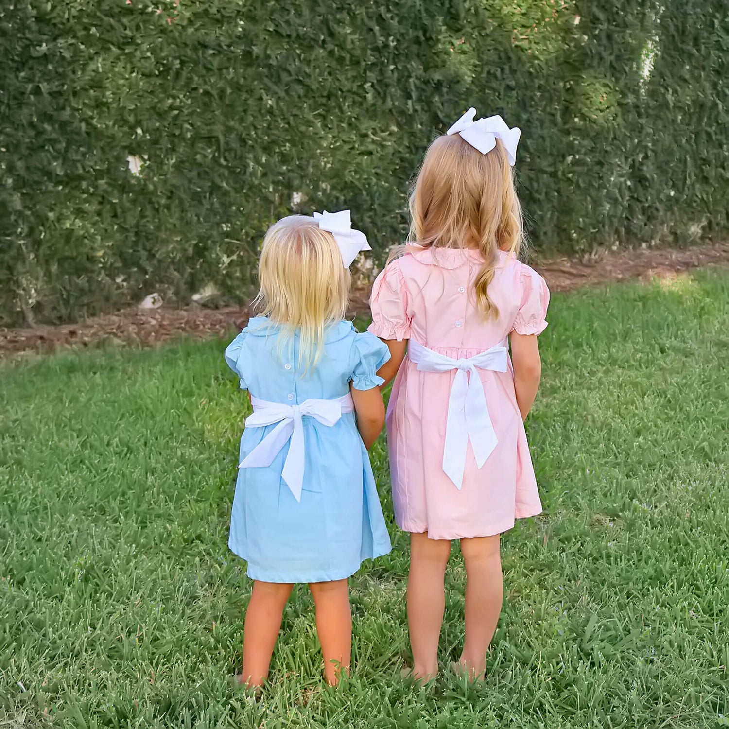 This sweet Pink Paige Dress is perfect for celebrating becoming a big sister or any special occasion! The adorable pink dress features bishop sleeves, a ruffle collar, and a lovely white sash to tie in the back. It’s a charming choice for any memorable moment!