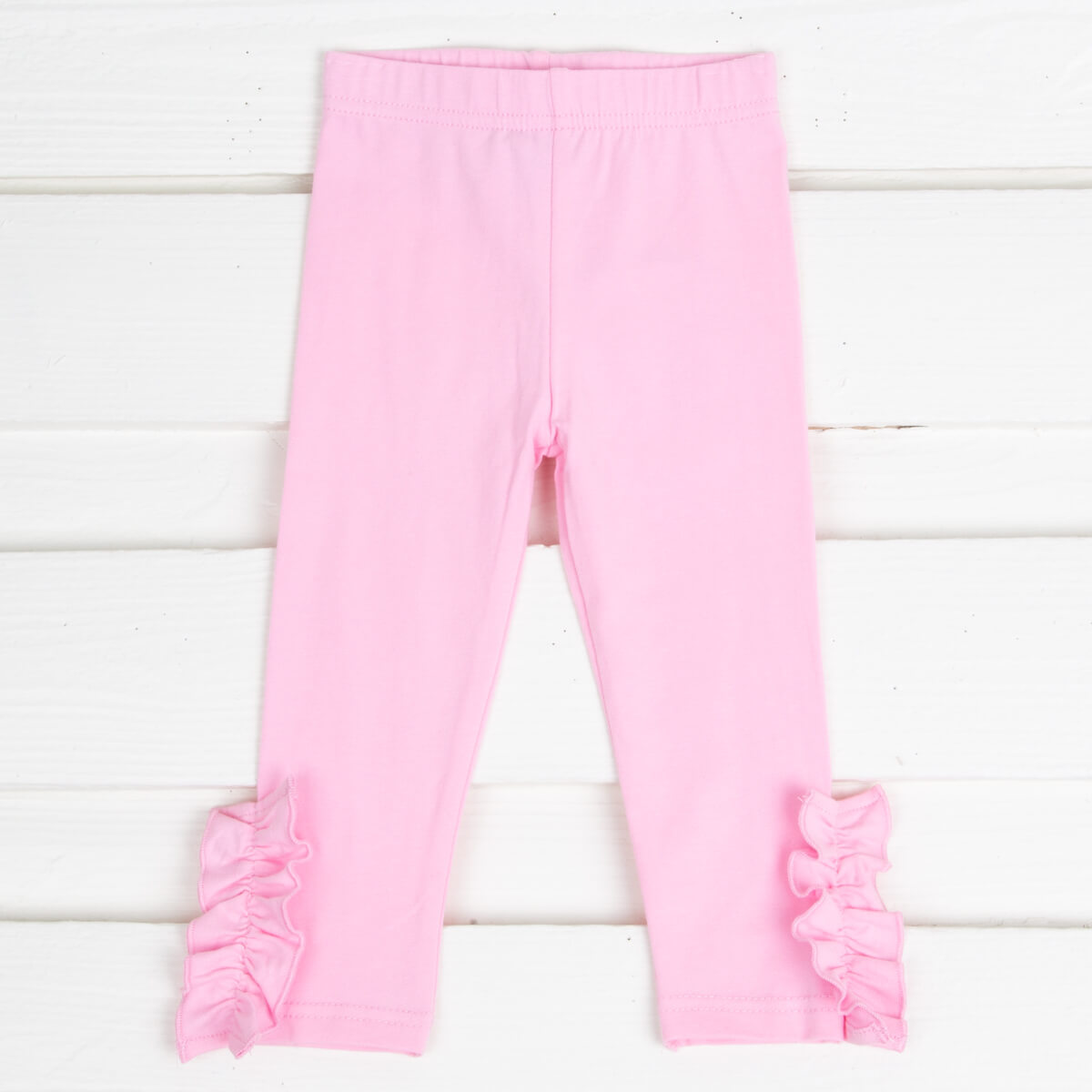 Precious pink side ruffle knit leggings for your little girl! Pair with your favorite knit top. Perfect for a playdate!