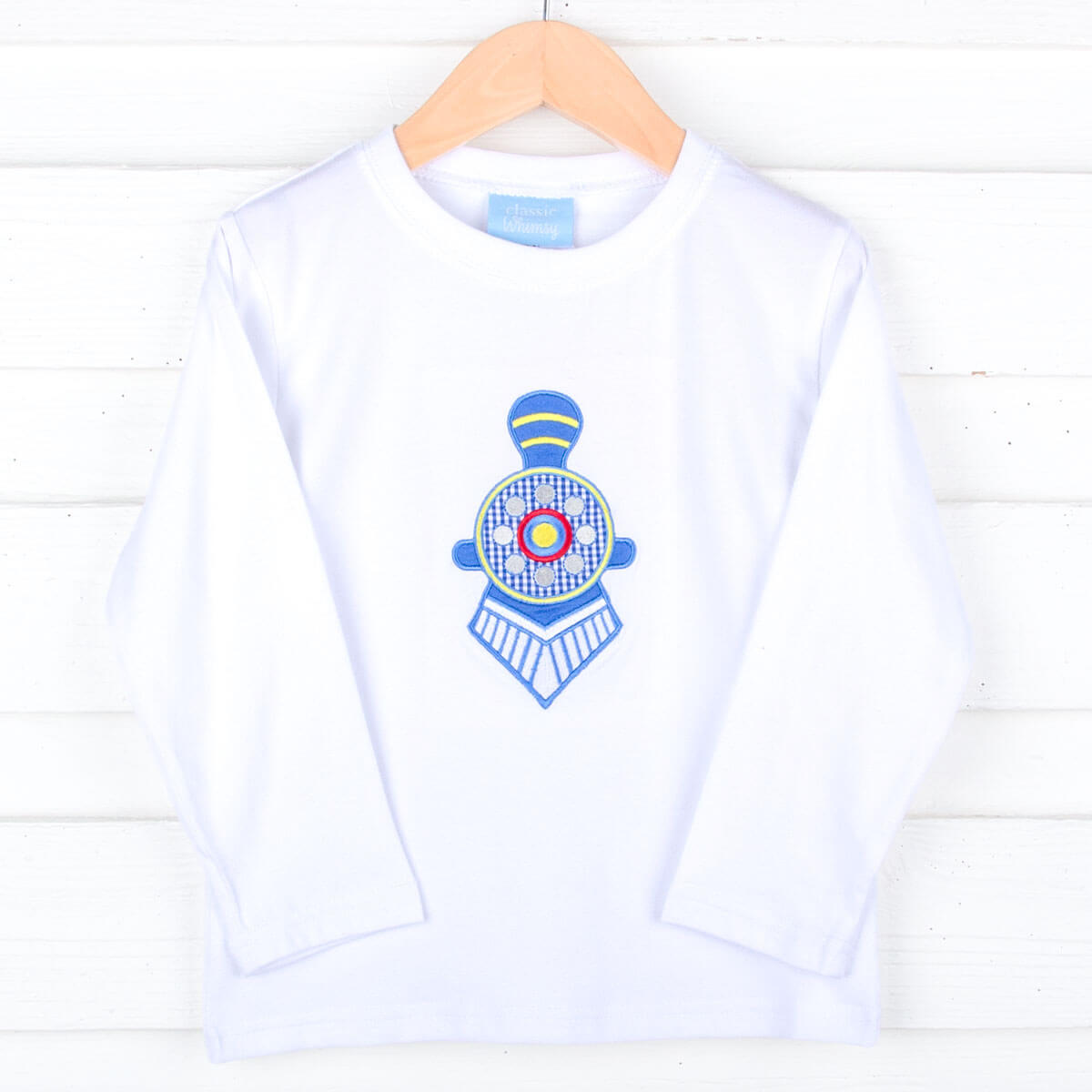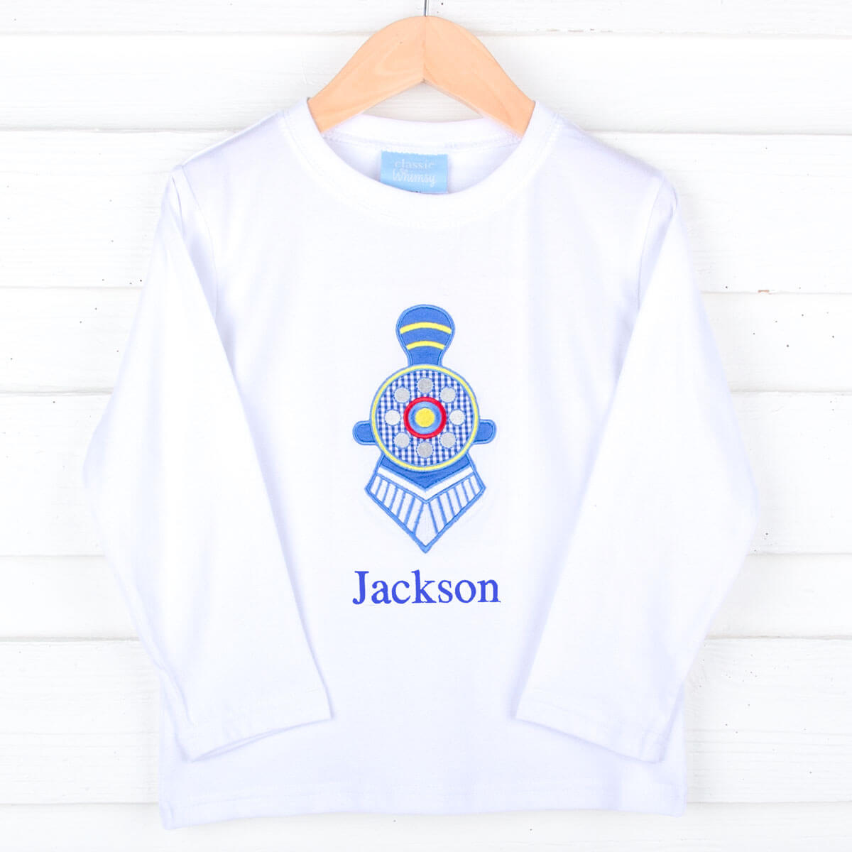 Get ready to spread Christmas cheer with our Polar Express White Long Sleeve Shirt! Perfect for everyone’s favorite holiday train ride, this long-sleeve shirt features a fun blue train applique. Don’t forget to add a monogram to personalize your Christmas look!