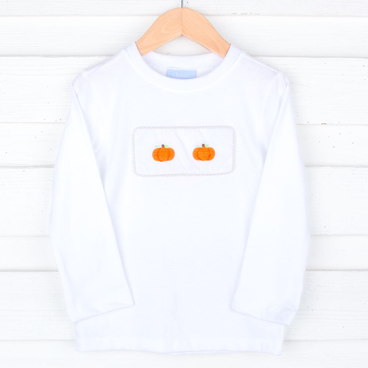 This Pumpkin French Knot White Long Sleeve Shirt is made for picture-perfect pumpkin patch photos! This charming white knit shirt features adorable French knotted pumpkins, ready for all your fall adventures.