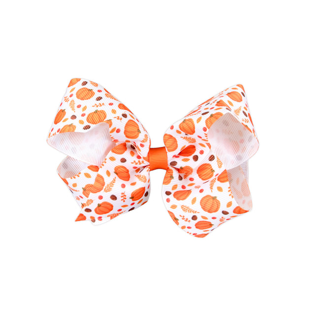 Complete your harvest-themed look with this fun Pumpkin Print Grosgrain Hair Bow! Featuring a playful pumpkin print, it adds a unique and stylish touch that's perfect for the season.
