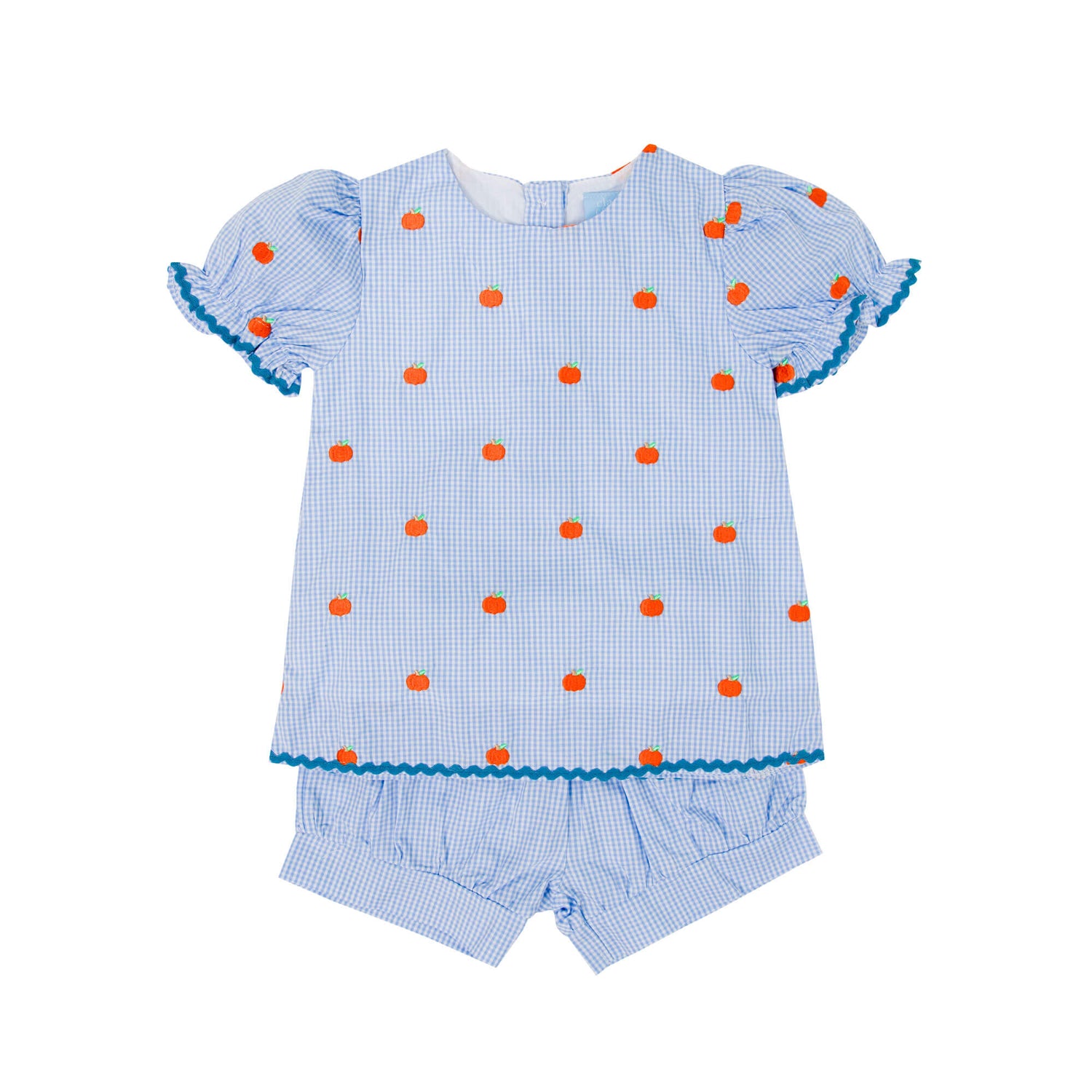 Pumpkin Schiffli Light Blue Gingham Eleanor Short Set