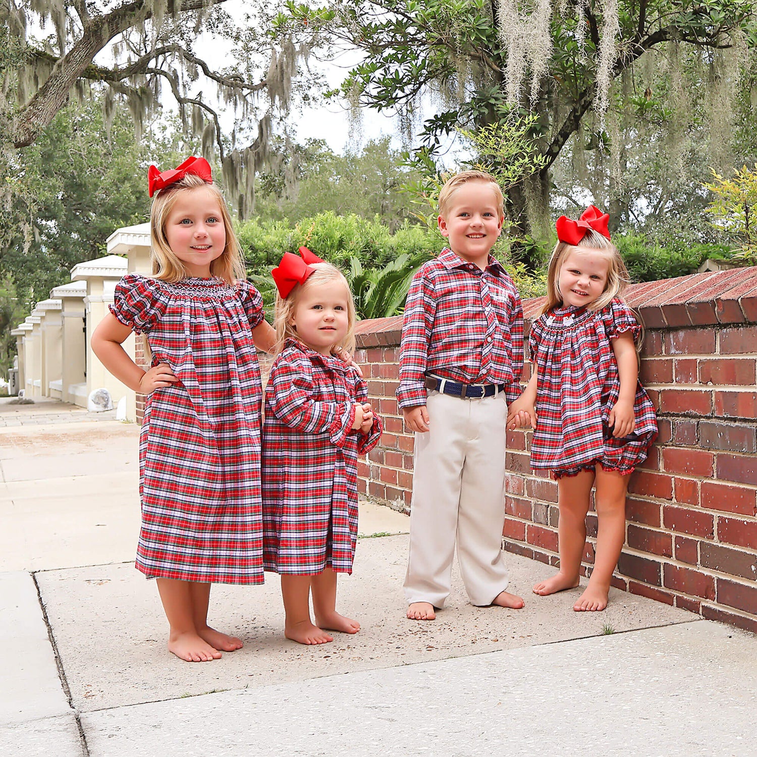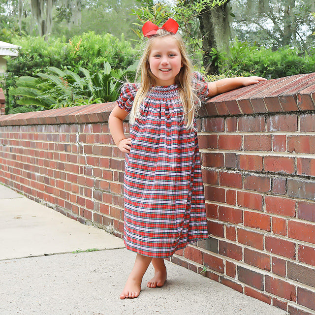 Celebrate Christmas in our Seattle Red Plaid Smocked Bishop Dress. This charming red plaid dress features elegant smocking with bishop sleeves, making it perfect for the festive season. A timeless choice for your holiday celebrations!
