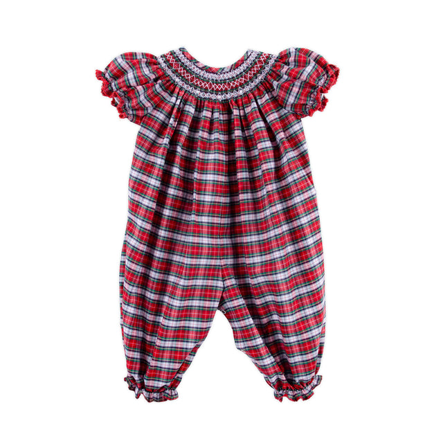 Celebrate Christmas in our Seattle Red Plaid Smocked Long Bubble. This charming red plaid bubble features elegant smocking with bishop sleeves, making it perfect for the festive season. With snaps in stride for easy dressing. A timeless choice for your holiday celebrations!