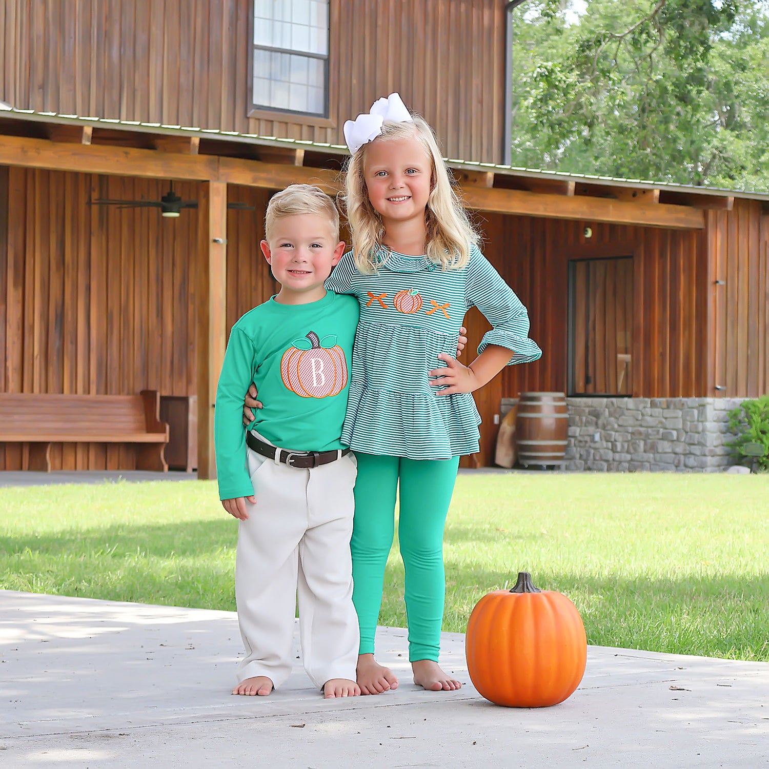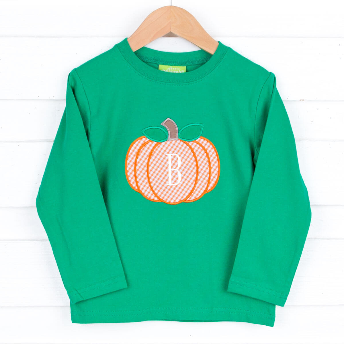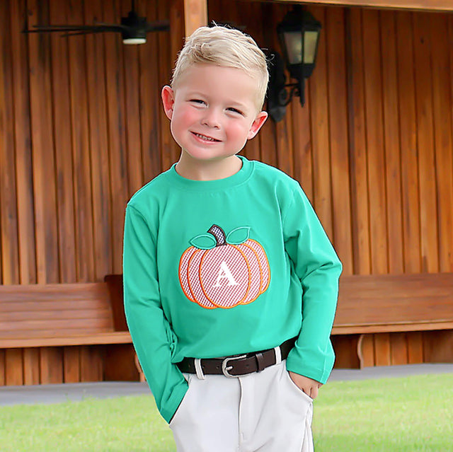 Pumpkin patch season is here, and our Great Pumpkin Green Long Sleeve Shirt is just what your little one needs! This green knit shirt features an awesome large pumpkin applique. It's perfect for playtime, comfort, and all-around cuteness! And don't forget to add an initial monogram right in the center of the pumpkin for that special touch.