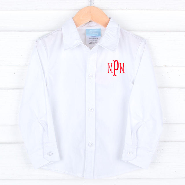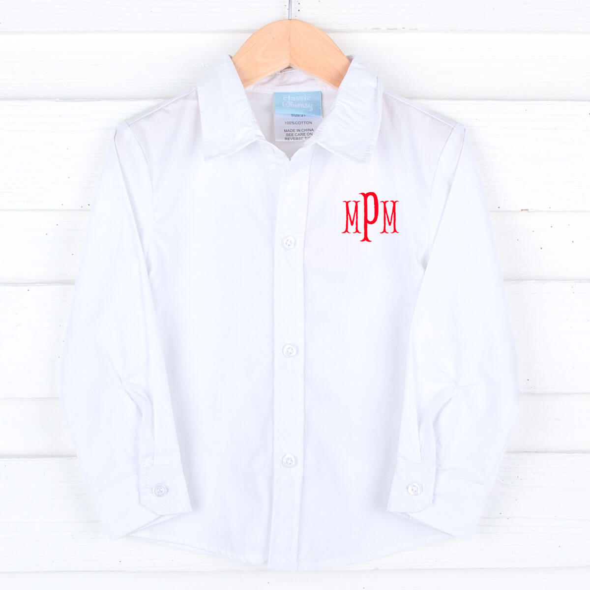 The holidays are here, and your little one will look absolutely adorable in our White Button Down Shirt! This festive white long-sleeve shirt is perfect for Christmas gatherings and holiday photos. Pair it with your favorite pants for a complete look. Add a monogram for a personal touch that makes this shirt truly one of a kind, perfect for creating unforgettable holiday memories!