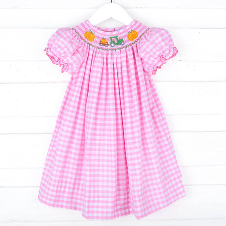 $21.30$31.24Unit price /Unavailable in this combinationPumpkin Hayride Pink Check Smocked Bishop Dress