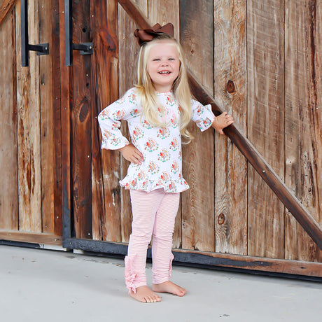 Feathery Turkey Pink Stripe Milly Legging Set