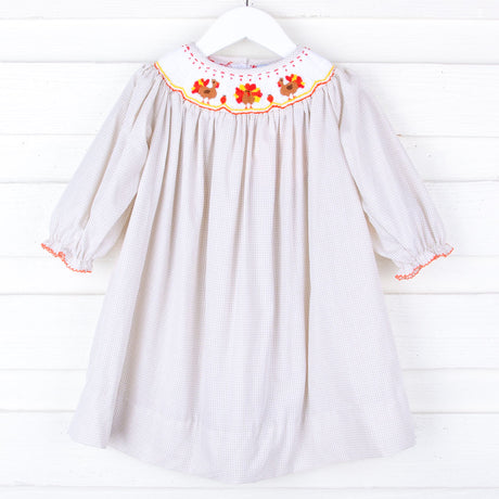 $56.81Unit price /Unavailable in this combinationSmocked Turkey Khaki Gingham Long Sleeve Bishop Dress