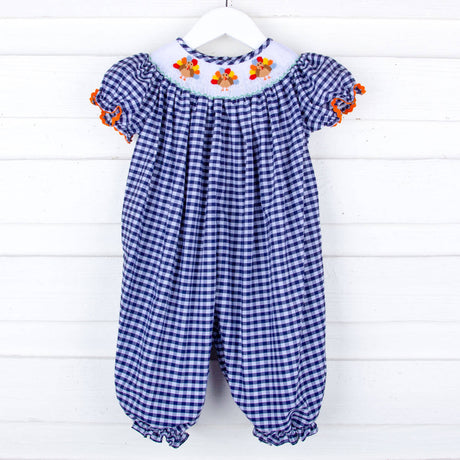 Sweet Turkey Navy Gingham Smocked Long Bubble