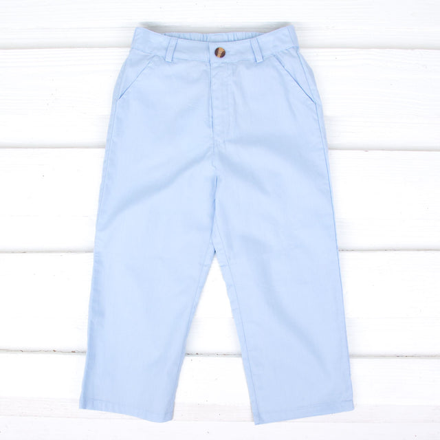 These Light Blue Standard Pants are a timeless addition to your big boy's wardrobe, perfect for year-round wear. Made from performance fabric, they offer comfort and durability while staying stylish. Versatile and sharp, they pair effortlessly with his favorite button-down or polo shirt for a classic look. Featuring a straight silhouette with slant pockets, back welt pockets, a zip fly with button closure, and belt loops, these pants are made to move with him. Complement any style, they’re perfect for school, church, play, or a polished collegiate look.