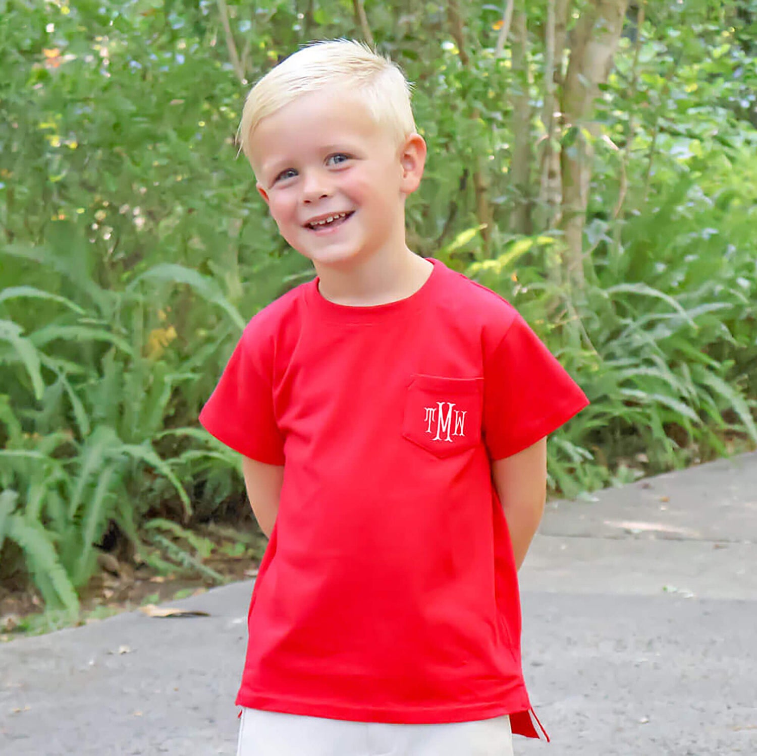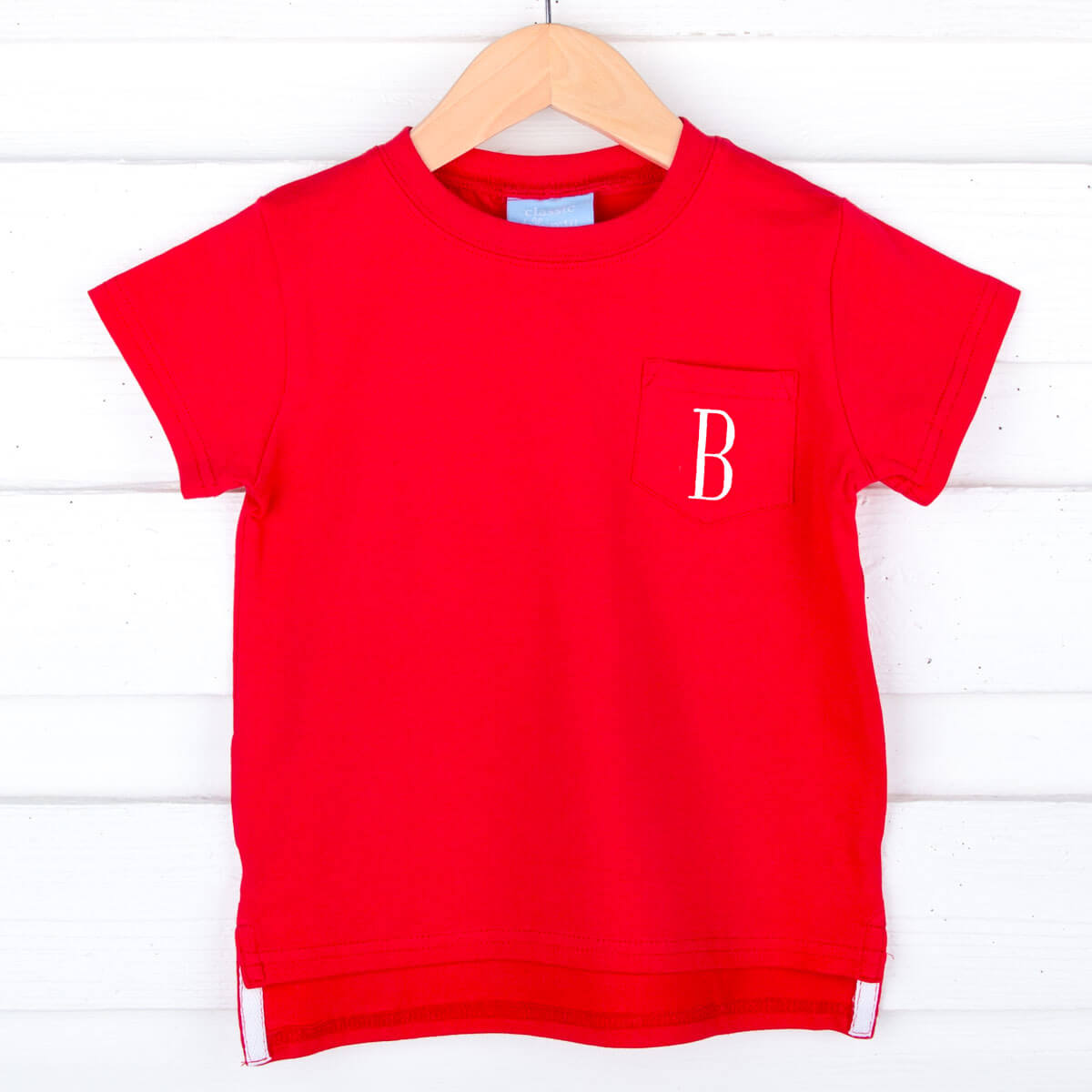 Add this Solid Short Sleeve Pocket Shirt to your little boy's wardrobe for a versatile and stylish staple. This short sleeve t-shirt features a convenient side pocket and is available in a variety of colors, including white, royal blue, green, and red. Great for school, playdates, family outings, or casual everyday wear, this shirt brings a playful and polished touch to any occasion. Personalize it with a monogram to make it uniquely his and add an extra special detail to his outfit.