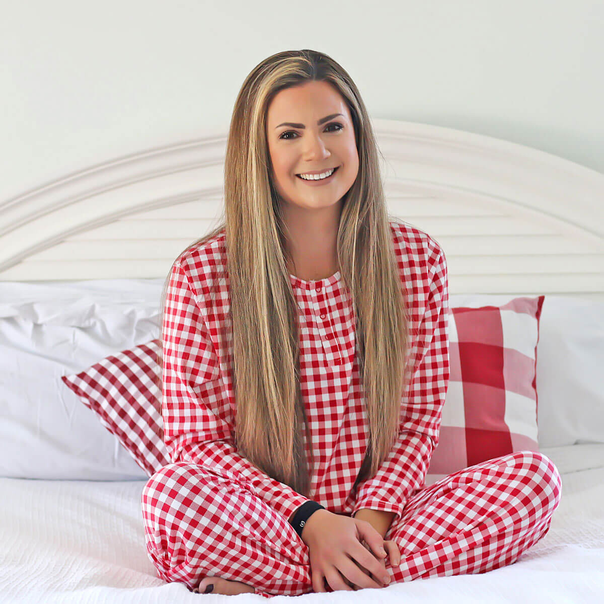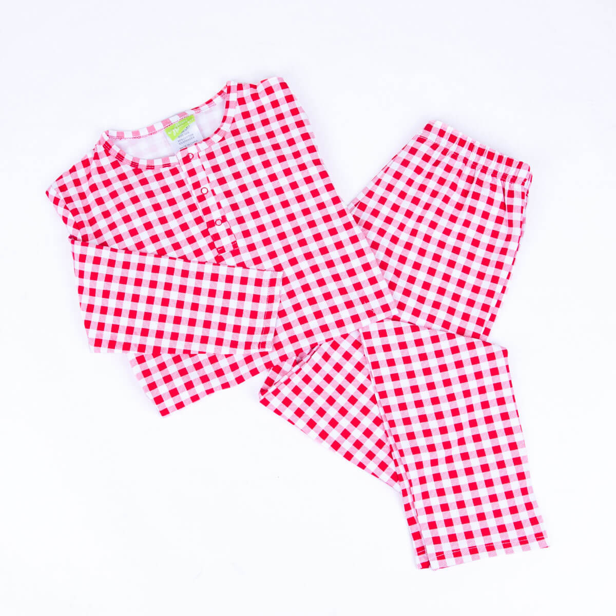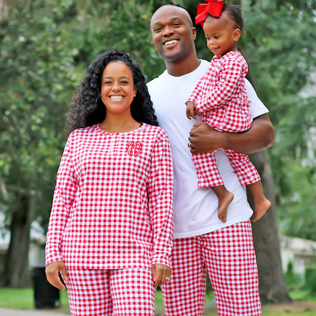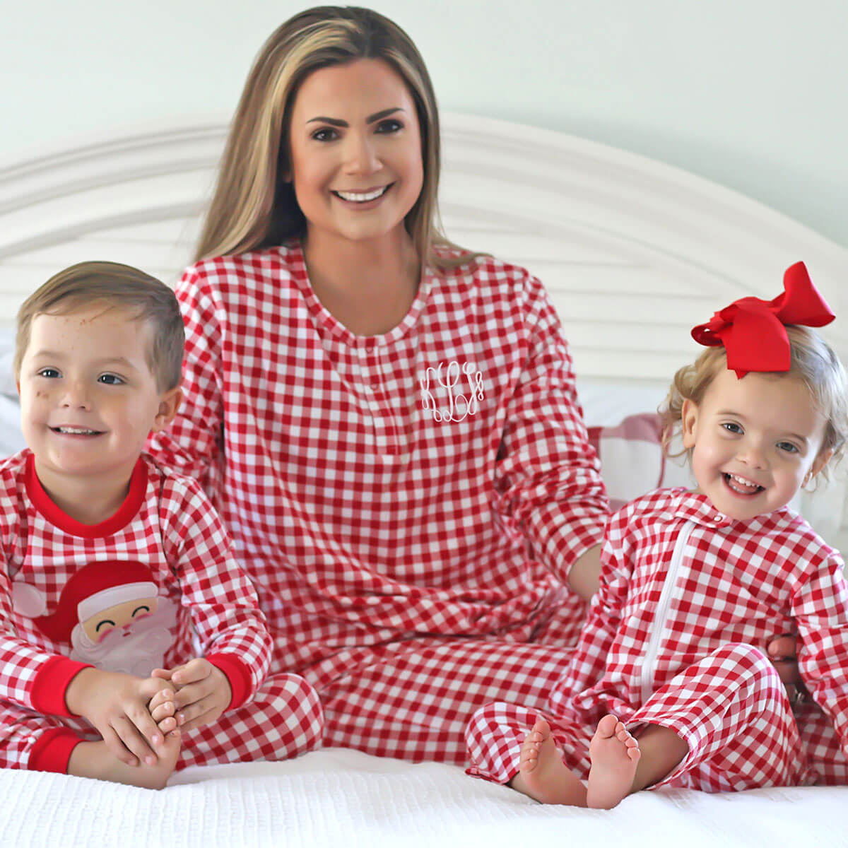 Coordinate with your family in these adorable Red Gingham Knit Women's Pajamas! Featuring a snap henley-style long sleeve top and matching long pants, they’re perfect for creating a cozy Christmas moment. Don’t forget to add a monogram to personalize your holiday look!