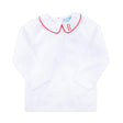 Both stylish and versatile, this White Long Sleeve Undershirt with Red Trim is ideal for layering under longalls during cooler weather. Perfect for Christmas gatherings, Valentine parties or any special occasion, this shirt is sure to make your little one stand out. You can also add a 3 Letter Monogram and wear it alone with coordinating gingham pants or personalize it with a name on the collar to make it even more unique!