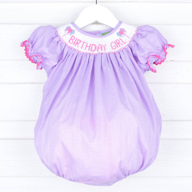 Birthday Girl Lavender Smocked Bubble