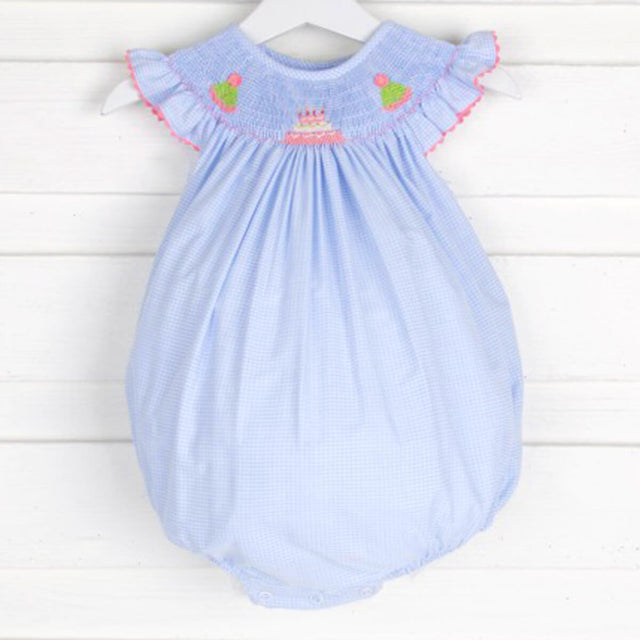Birthday Smocked Blue Gingham Bubble