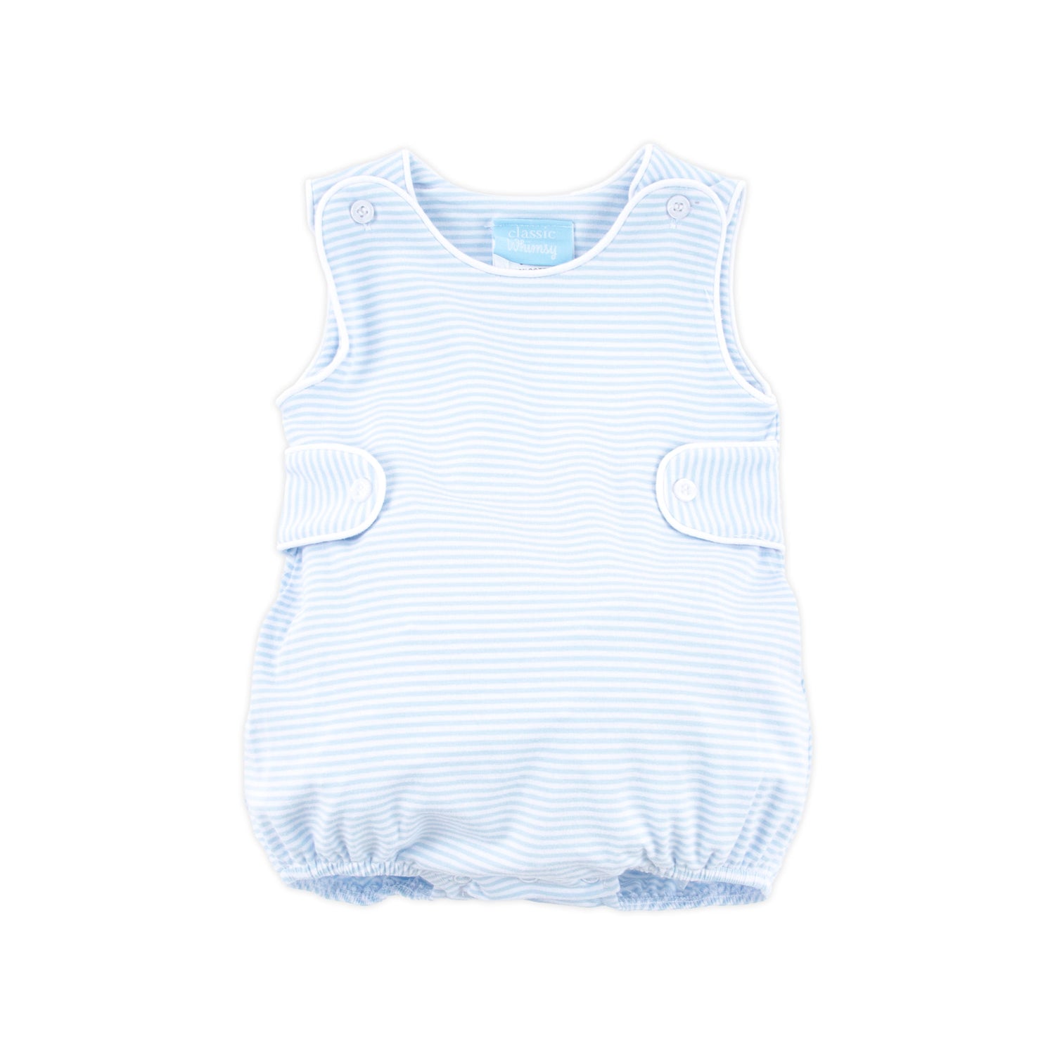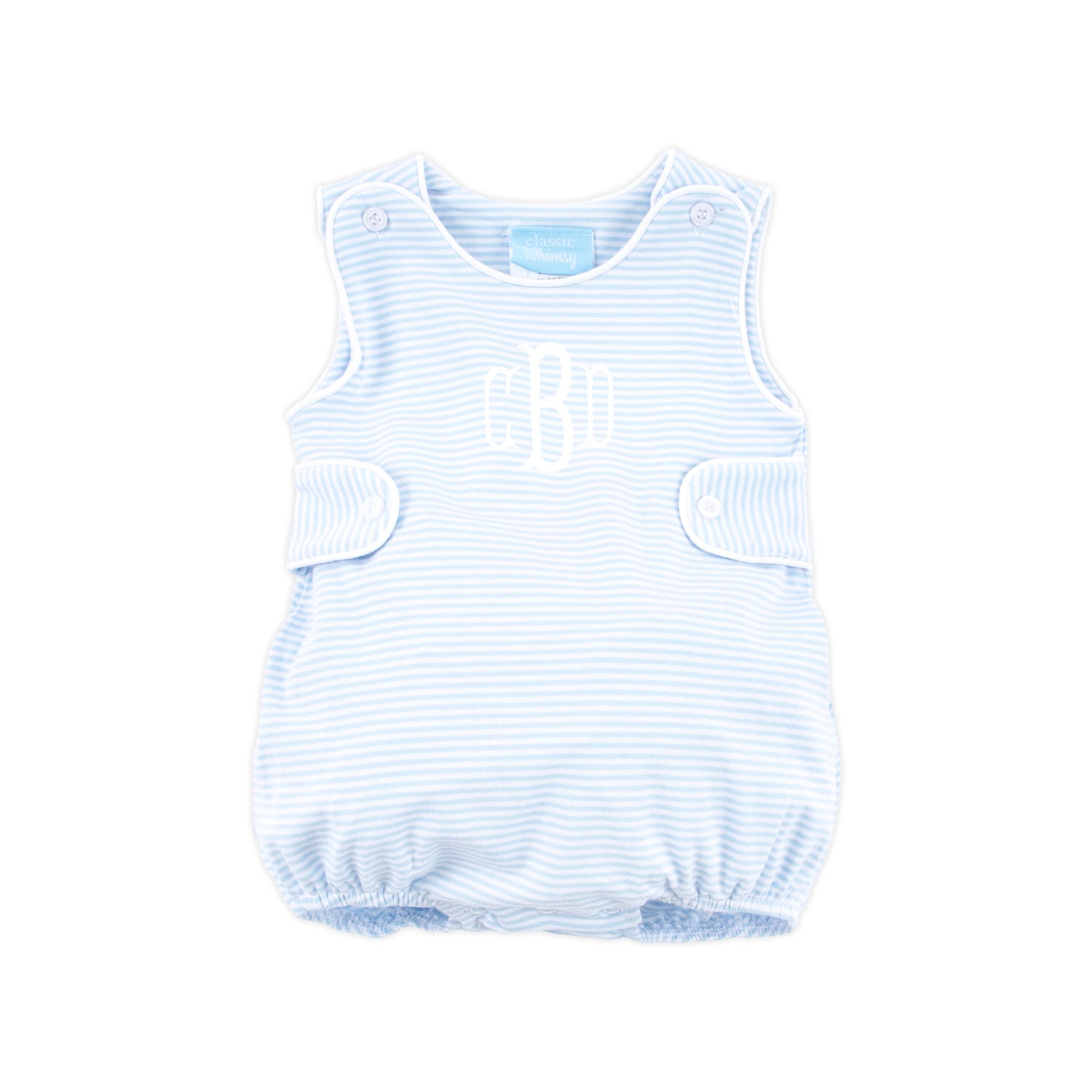This Blue Stripe Sun Bubble is an adorable bubble suitable for all seasons. It features a soft blue stripe knit fabric and a classic shoulder buttons. For a personal touch, add a monogram to make it even more special. For easy diaper changes and dressing, the bubble comes with convenient snaps in the stride. Whether it's for playdates, outings, or special occasions, this bubble offers both comfort and style.