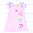 Happy Birthday!!! Celebrate your little one's milestone with our precious Let's Celebrate Ivy Dress. This pink gingham Ivy dress features delightful appliqués of a birthday cake, balloons, and a present. Adorned with cute flutter sleeves and two side bows, it's the perfect outfit for the special occasion!