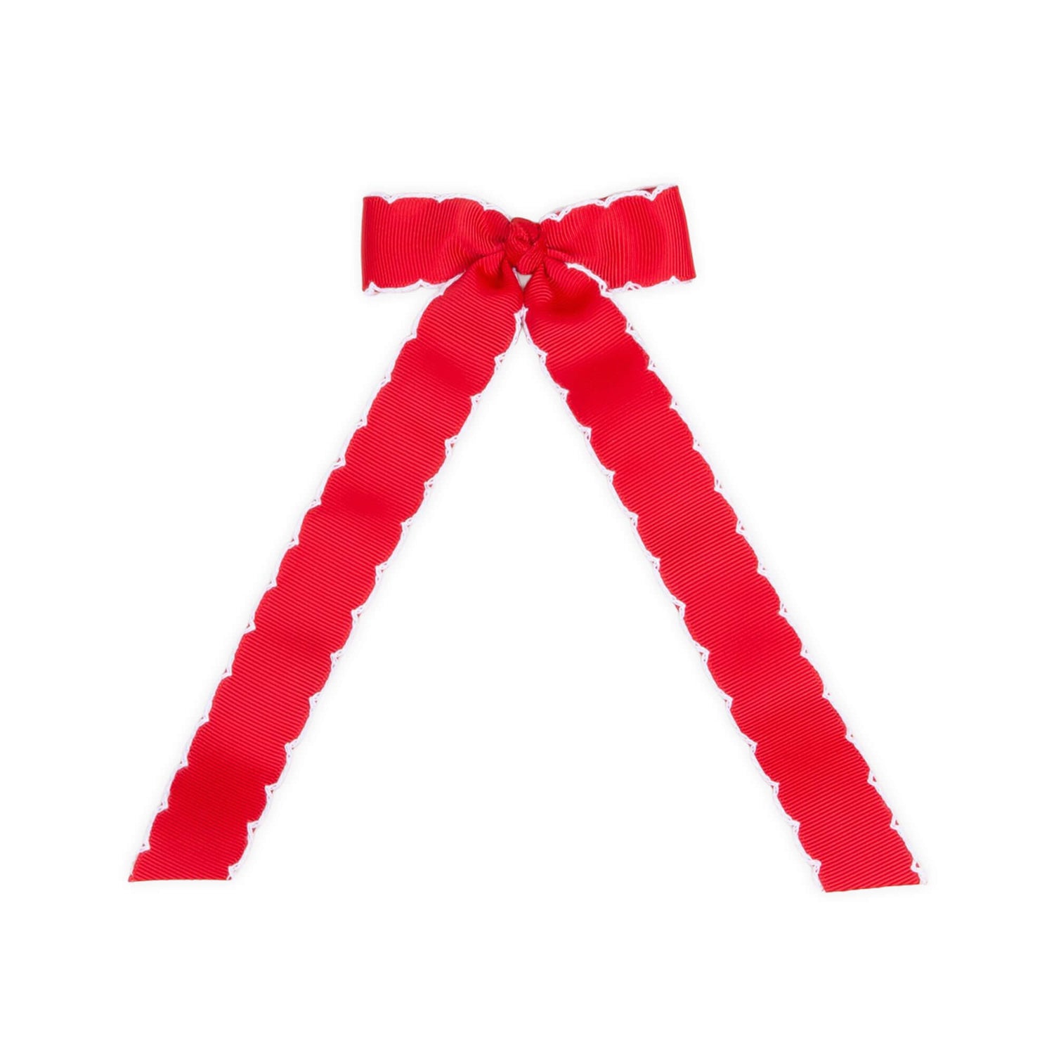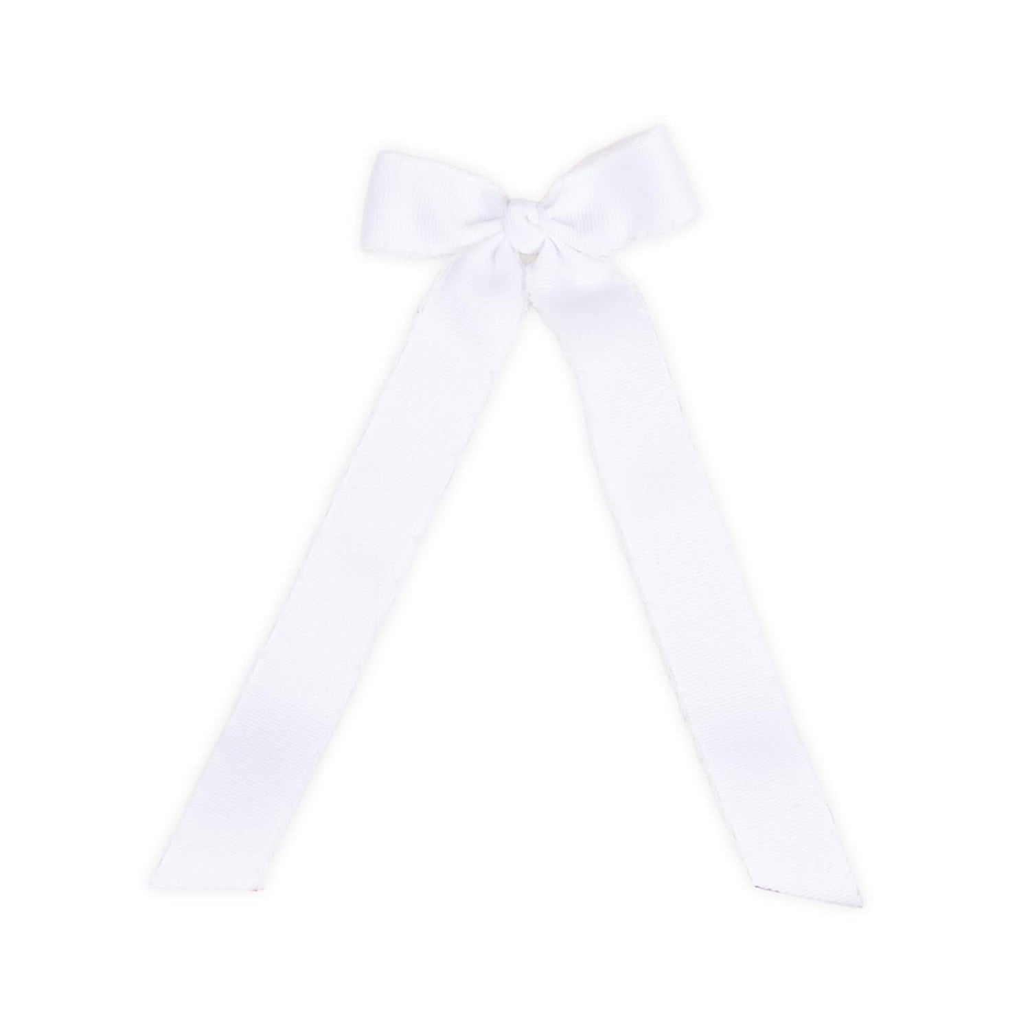 This adorable mini grosgrain moonstitch bow features 8" streamer style. Perfect for ponytails!