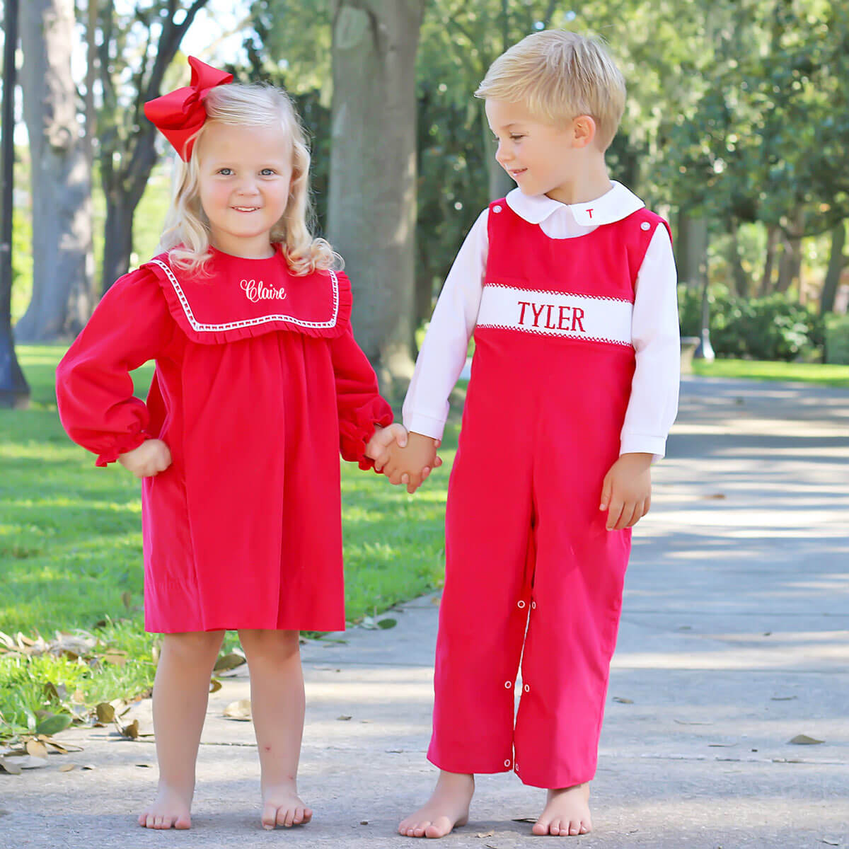 Get ready for Christmas pictures with our Red Corduroy Collection. Personalize this outfit by adding your little one's monogram.