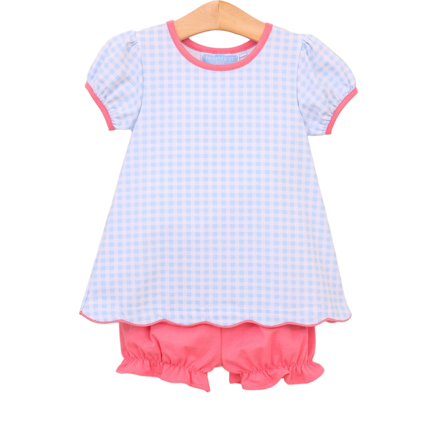 Cecilia Light Blue Knit Gingham Bloomer Set