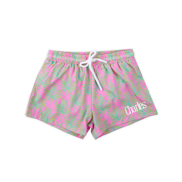 Paradise Palm Pink Swim Trunks
