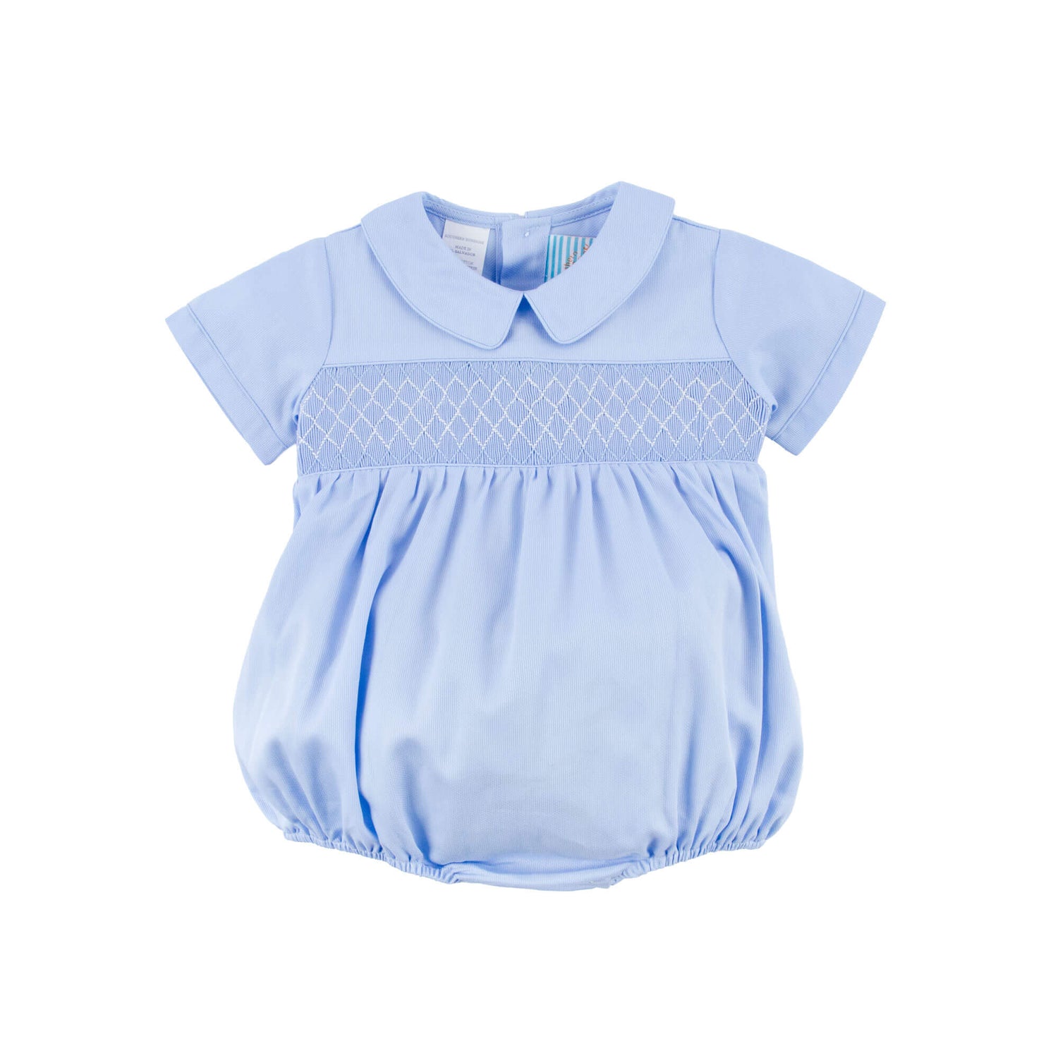 Celebrate Easter Sunday in our Easter Celebration Blue Piqué Smocked Collared Bubble! This darling blue piqué bubble features a sweet collar, short flutter sleeves, and precious geometric smocking, with convenient snaps in the stride for easy changes.