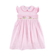 Celebrate Easter Sunday in our Easter Celebration Pink Piqué Smocked Collared Dress! This darling pink piqué dress features a sweet collar trimmed with pink ric-rac, flutter sleeves, and precious smocked Easter bunnies.
